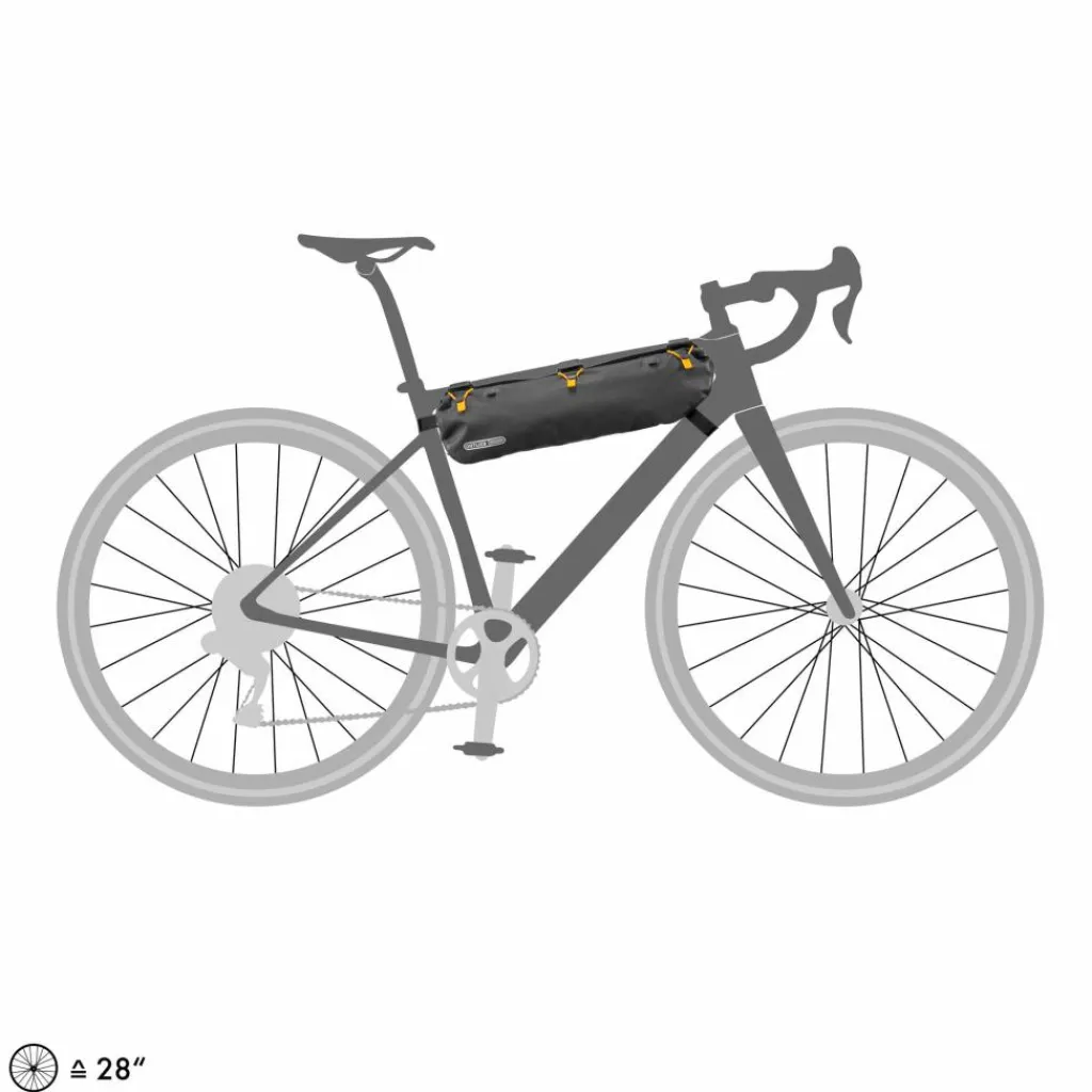 Die wasserdichte Tasche bietet dir 4 Liter Volumen. Sie hat einen schlanken Rollverschluss und individuell positionierbare Gurte mit Klettverschluss. Dank des Rollverschlusses hast du eine großzügige Öffnung zum Beladen der Rahmentasche. Das Material ist Ortlieb-typisch robust und abriebfest – und auch PVC-frei. Das Frame-Pack Rolltop Toptube ist auch für Carbon-Rahmen geeignet.