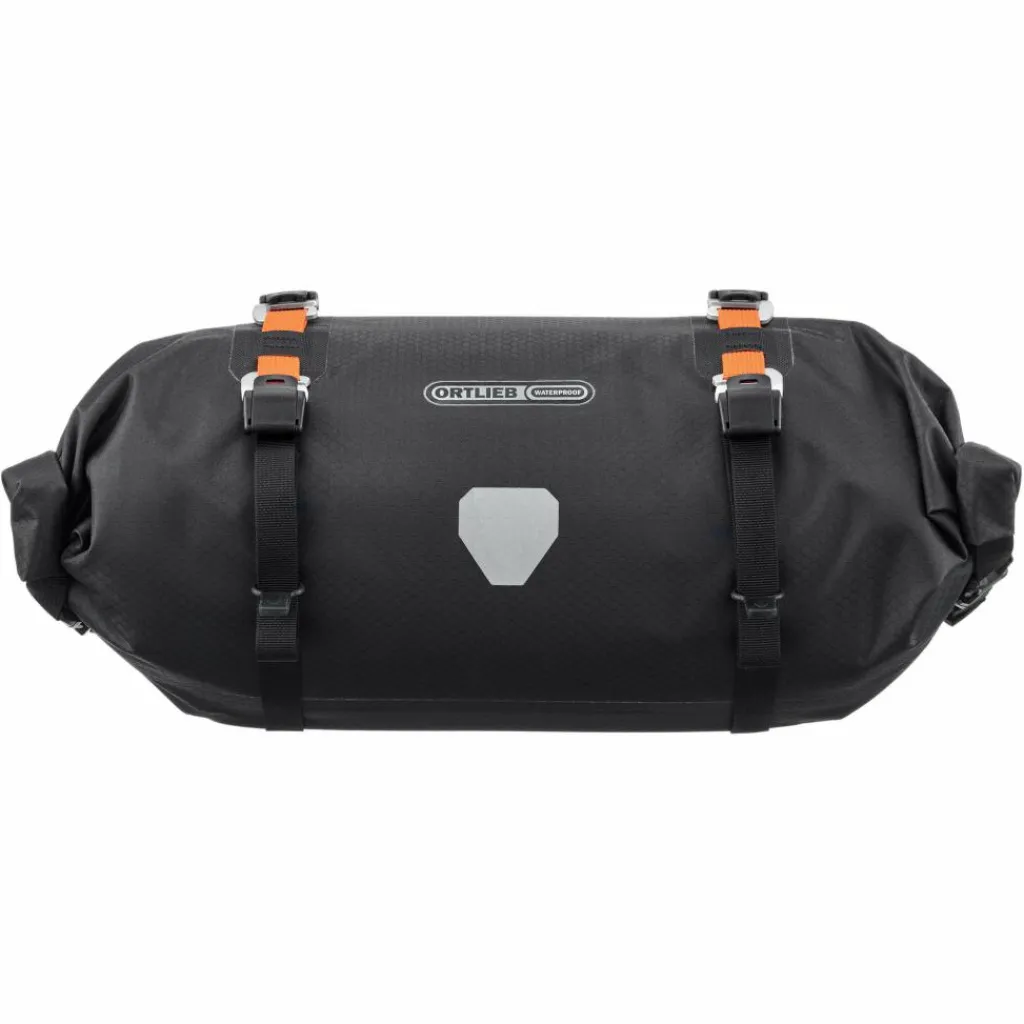 Die robuste Gepäckrolle hat viel Volumen und hält ihren Inhalt zuverlässig trocken. Je ein Rollverschluss an den Enden erlaubt schnellen und komfortablen Zugriff auf den Taschen-Inhalt. Die 4 Leichtmetallhaken mit Klemmschnalle am Riemen dienen der Kompression und können zudem das Ortlieb Accessory-Pack (separat erhältlich) auf der Vorderseite des Handlebar-Pack Flex befestigen. Für deinen Lenker brauchst du als Adapter ein Ortlieb Handlebar-Mounting-Set, um das Handlebar-Pack Flex sicher an deinem Bike zu fixieren.