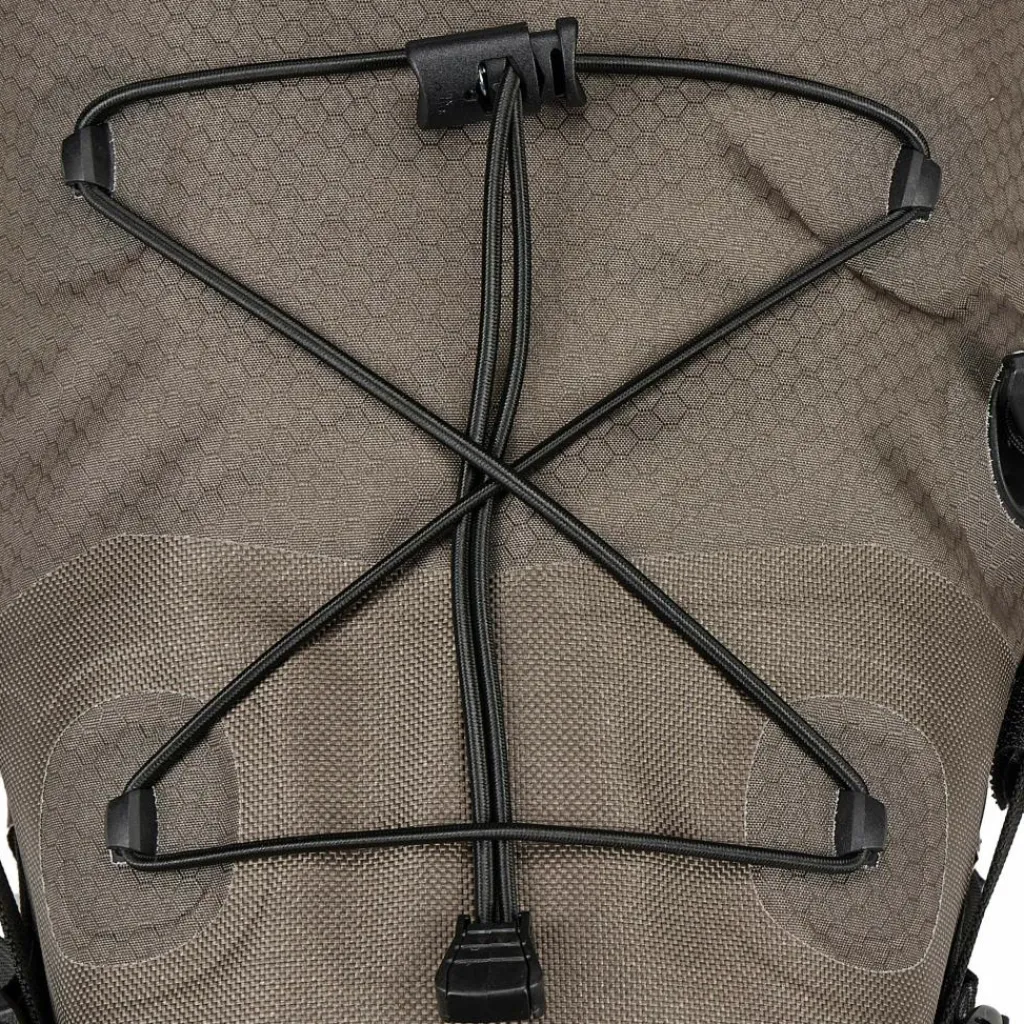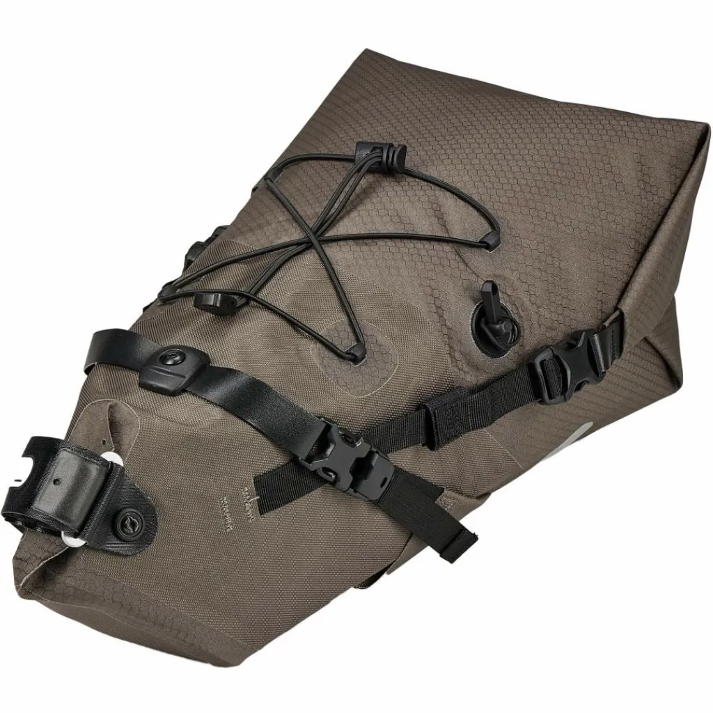 Neben dem Look stimmt natürlich auch nach wie vor die Performance: Die 11-Liter-Satteltasche ist robust, wasserdicht und gemacht fürs Bikepacking. Die Tasche schafft Stauraum an deinem Gravel-Bike für längere Touren. Unter der Elastikkordel auf der Oberseite kannst du deine Handschuhe oder Windjacke stecken, um sie schnell griffbereit zu haben. Der Rollverschluss wird zur Sattelstütze hin über die Riemen geschlossen; das Seat-Pack wird so gleichzeitig komprimiert. Per Kompressionsventil mit Puller komprimierst du das Seat-Pack komfortabel auf das kleinste mögliche Volumen.