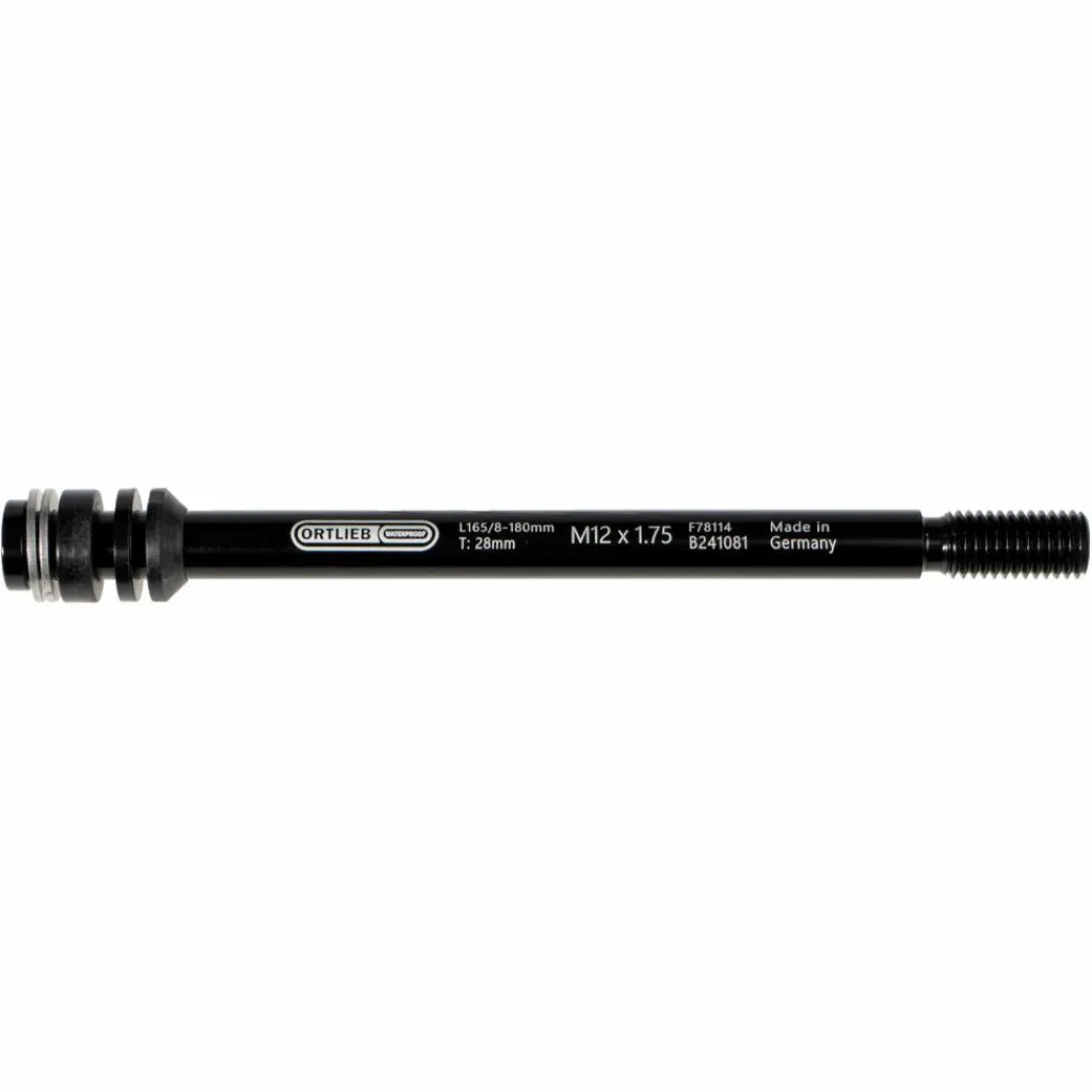 Universelle Steckachse mit M6-Innengewinde an beiden Seiten, um das Befestigen eines Gepäckträgers (Ortlieb Quick-Rack) oder eines Anhängers zu ermöglichen. Mit den Spacern an deinen Rahmen anpassbar.