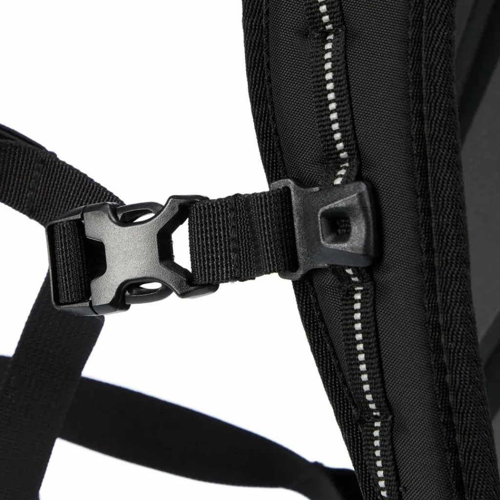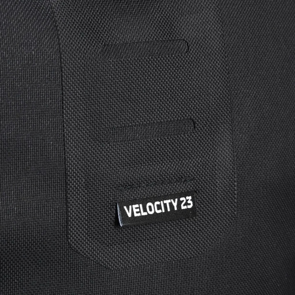 Das gepolsterte Laptopfach ist schwebend angebracht. So stößt der Laptop beim Absetzen des Rucksacks nicht auf dem Boden auf. Zwei Standfüße schützen die Unterkante des Velocity PS 23L und geben ihm Standsicherheit. Der Fahrradrucksack ist wasserdicht, aber wie immer gilt: Um die Wasserdichtigkeit zu gewährleisten, muss der Verschluss 3x gerollt werden!