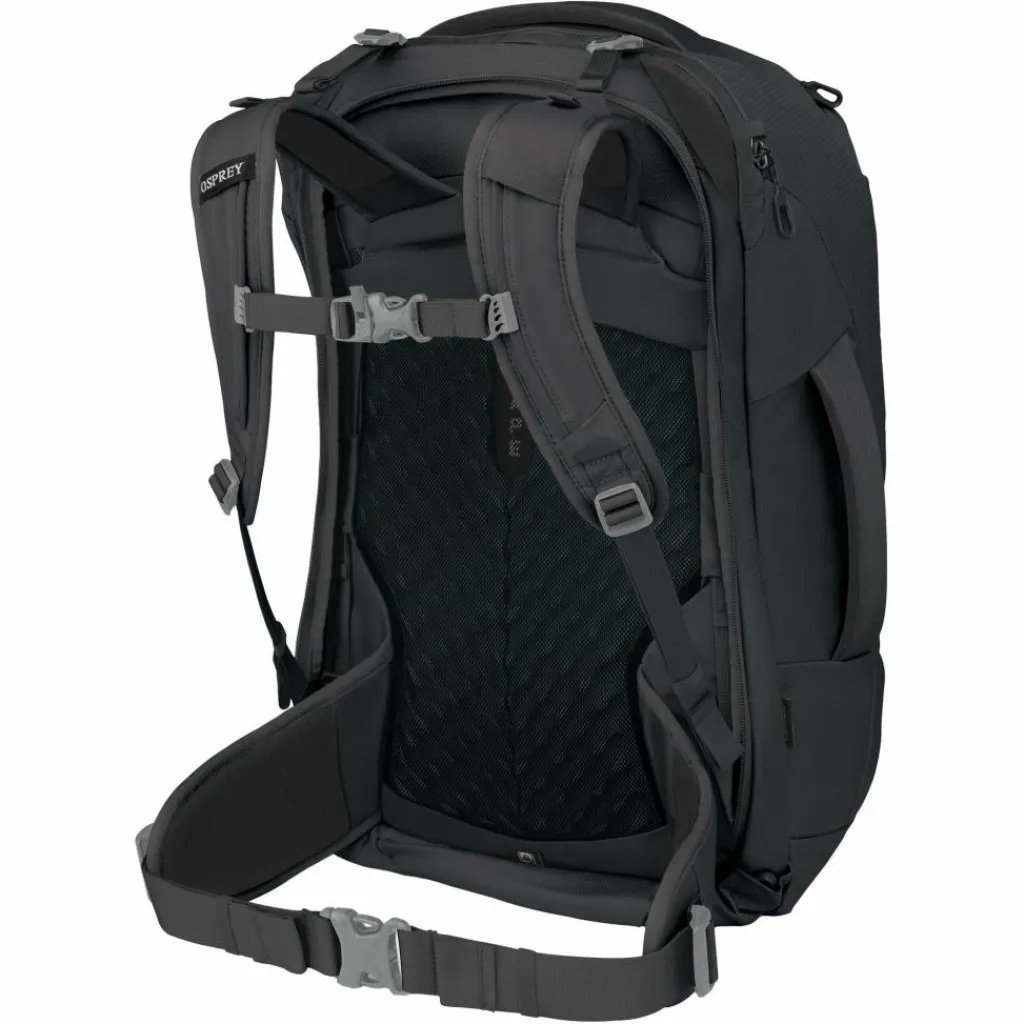 Auch wenn der Fairview ein Hybrid aus Rucksack und Koffer ist: Beim Tragekomfort ist Osprey keine Kompromisse eingegangen. Gut so! Denn auch bei voller Beladung trägt sich der Rucksack noch äußerst bequem. Möglich macht es das Zusammenspiel aus leichtem Aluminiumrahmen, stabiler Rückenplatte und breitem Hüftgurt. Diese sorgen für eine ausgezeichnete Lastenübertragung und hohen Tragekomfort, auch wenn der Weg zur Unterkunft Mal etwas weiter ist.
