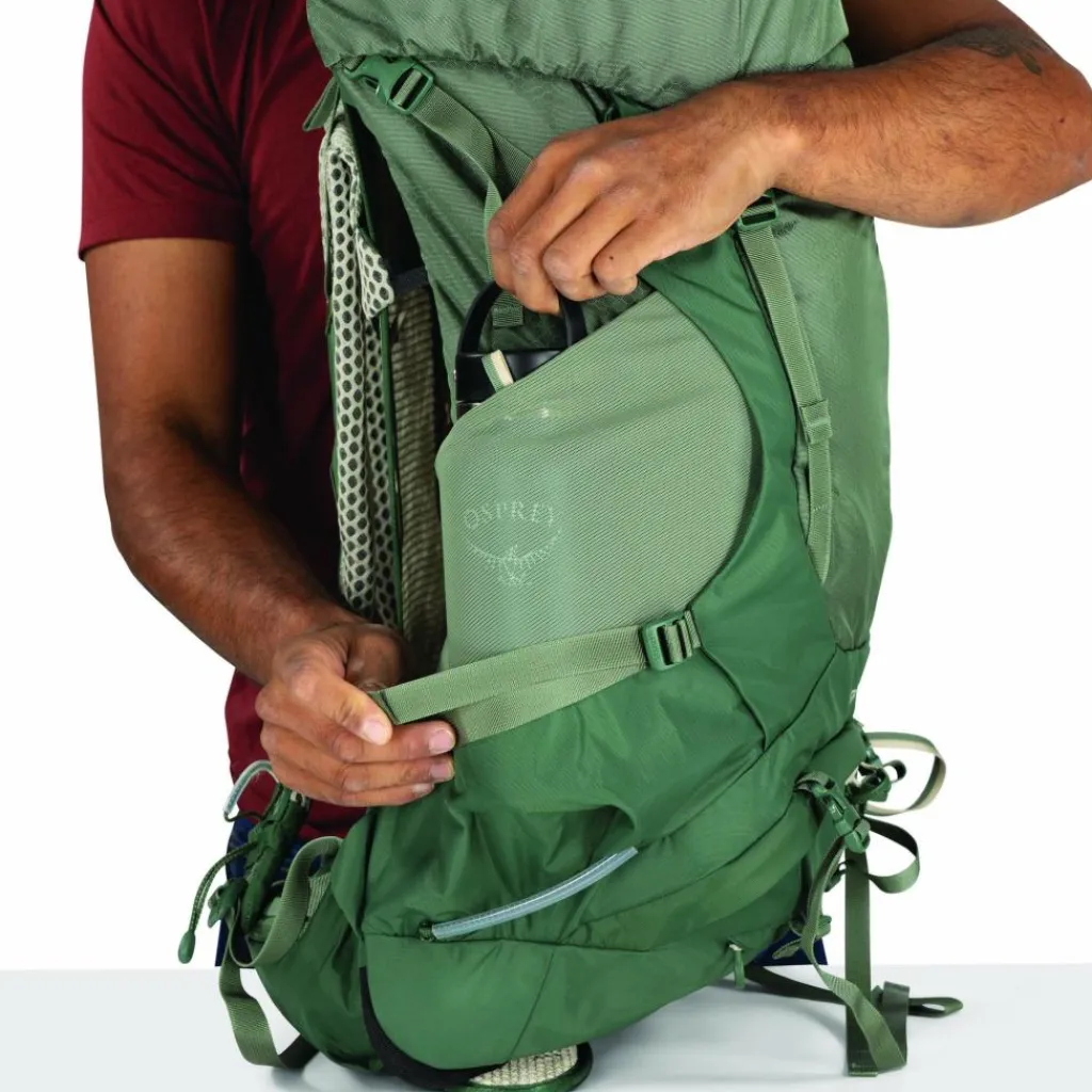 Daneben bietet der Stratos eine Reihe weiterer Details, die dir das Outdoor-Leben leichter machen. Mithilfe der zwei RV-Fächer auf den Hüftflossen hast du Snacks und andere Kleinigkeiten immer zur Hand, ohne den Rucksack abzusetzen. Dank Stow-On-The-Go Befestigung kommst du auch an deine Trekkingstöcke problemlos mit geschultertem Rucksack heran. Die seitlichen Steckfächer, ein Deckelfach sowie ein RV-Fach auf der Front geben dir zudem schnellen Zugriff auf Dinge wie Trinkflaschen, deine Regenjacke oder eine Stirnlampe.