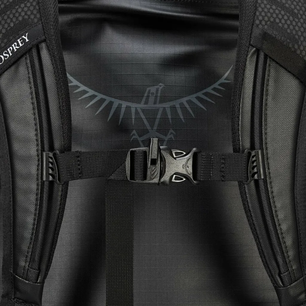 Die Duffel besitzt vier feste Handgriffe, die ein einfaches Verstauen und Festzurren im Flugzeug oder auf dem Autodach möglich machen. Obendrein ist sie mit bequemen Rucksackgurten ausgestattet. Diese sind aus einem weichen, perforierten Schaum und mit einem atmungsaktiven Netzstoff bezogen. Ein verstellbarer Brustgurt mit Signalpfeife hält die Träger an Ort und Stelle.