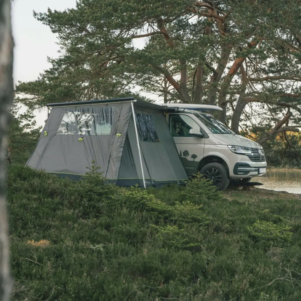 Das Set aus praktischen Markisen-Ergänzungen verwandelt die Markise deines Camper Vans im Handumdrehen in einen Wohnraum, der vor Wind, Wetter und Blicken geschützt ist.