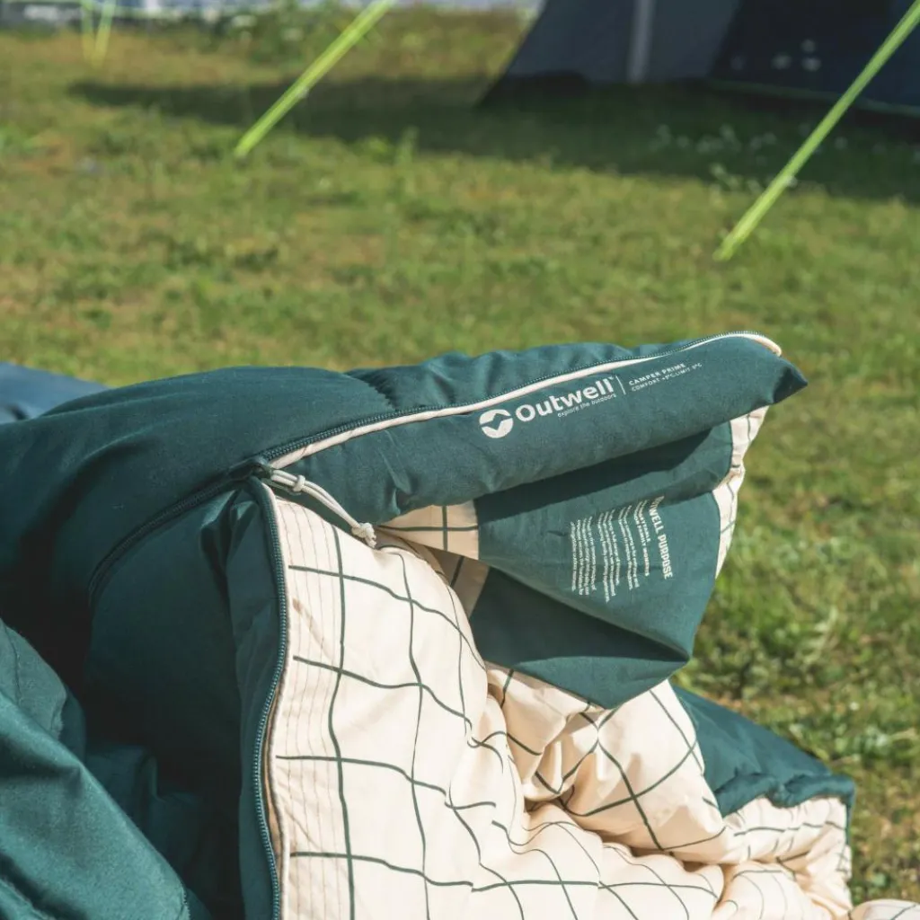 Der Outwell Camper Schlafsack wurde für kuschelige und komfortable Campingnächte entwickelt. Er bietet nicht nur ein sehr weiches Innenfutter, das sich nach echter Bettwäsche anfühlt, sondern hat sogar ein herausnehmbares Kissen in einer Kapuze integriert.