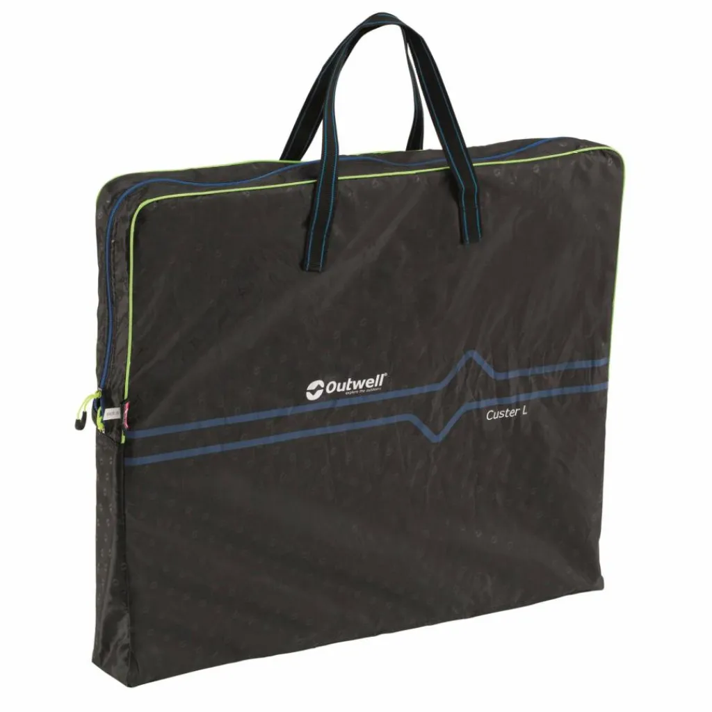 Für den Transport und die Lagerung kannst du den Tisch natürlich auch zusammenklappen und in die mitgelieferte Tragetasche verpacken. Dann lässt sich der Custer L prima im Auto oder Camping-Van verstauen.