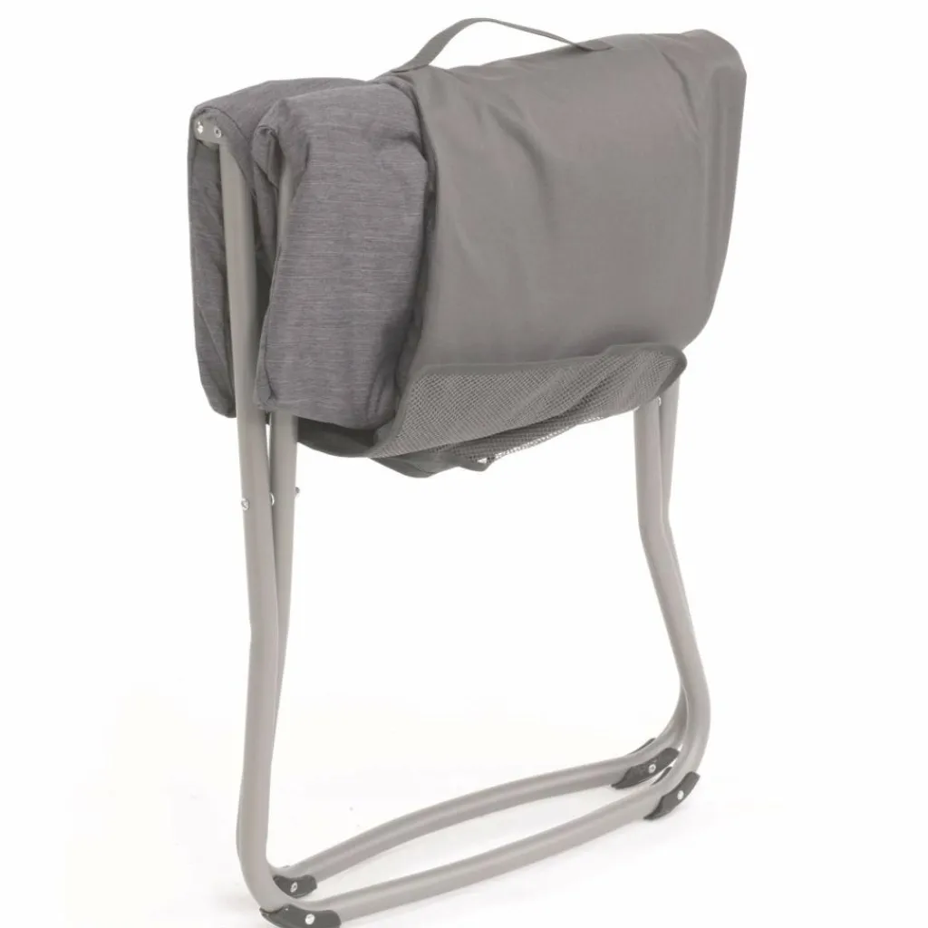 Gepolsterter, klappbarer Stuhl, den du an warmen Tagen vom Polster befreien kannst; je nach Temperatur kannst du den Grenada Lake ausstatten. Und das Draußen ungemindert und ohne zu frieren genießen.