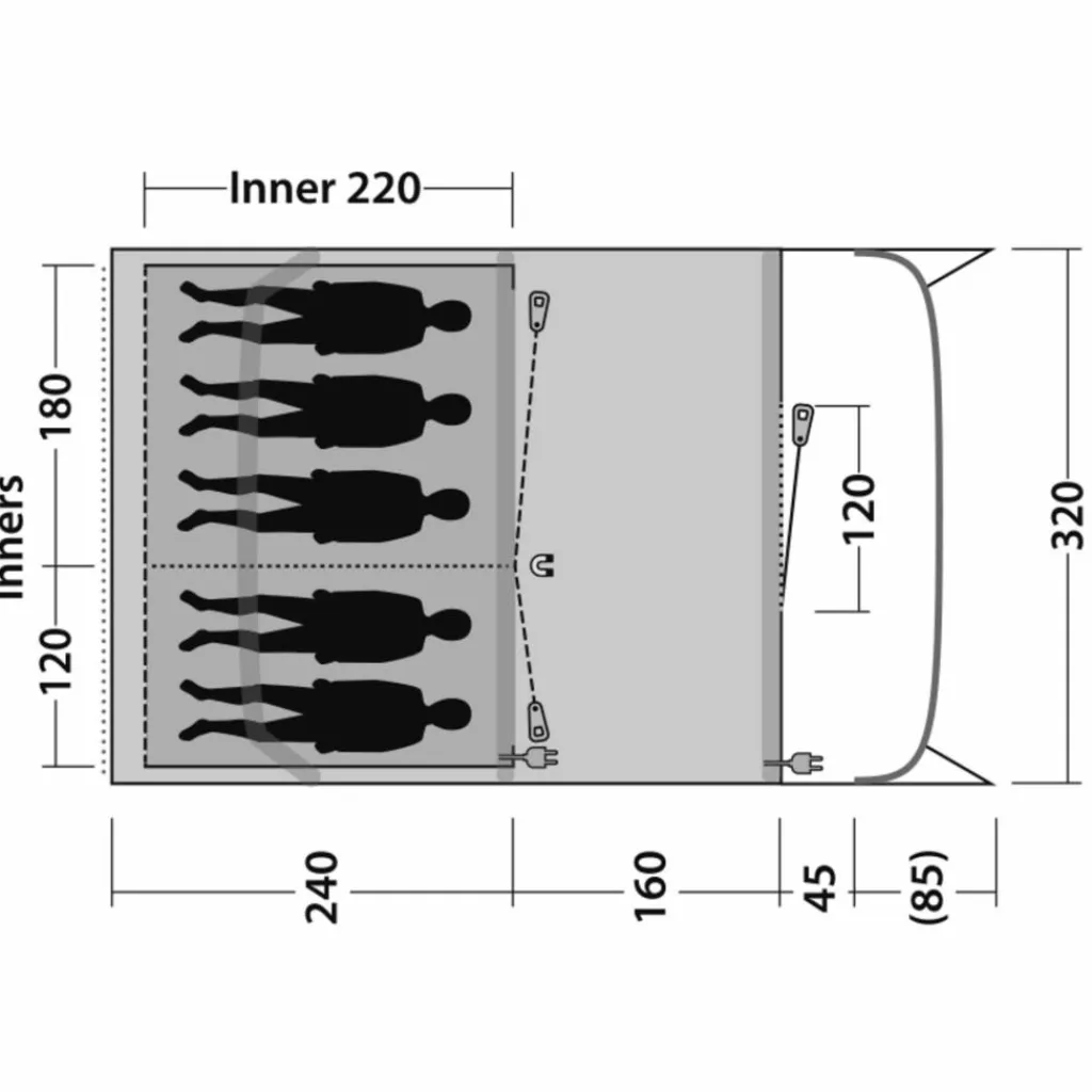 Komfort spielt beim Monterey 5 Air eine große Rolle. So sind die Innenzeltkabinen abgedunkelt, damit du ungestörten Schlaf genießt. Langschläfer freuen sich über Magnetverschlüsse an den Türen, denn damit kannst du die Türen leise öffnen und schließen, wenn du morgens vor den anderen wach bist. Für gemütliche Stunden auch tagsüber besteht das Dach der Apsis aus einem hellen Material, das für ein warmes Licht sorgt. Und dank der gegenüberliegenden Belüftungsöffnungen ist immer für frische Luft gesorgt.
