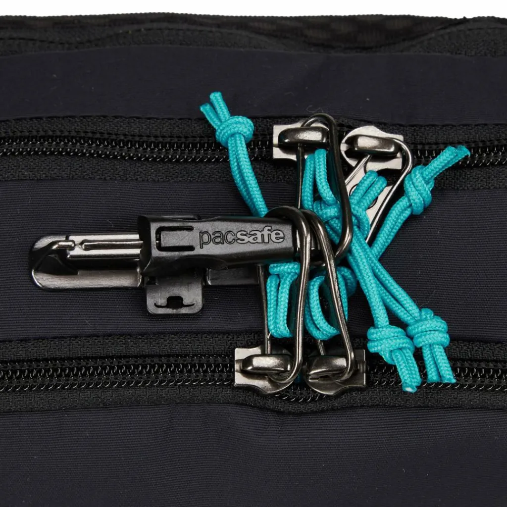 Dass Pacsafe der Schutz der Meeresschildkröte und ihres Lebensraumes wichtig ist, erkennst du nicht nur an dem Logo der Marke, sondern auch an dem wunderschönen Ozeanblau der Zipper und des Innenfutters, das einen tollen farblichen Akzent setzt.