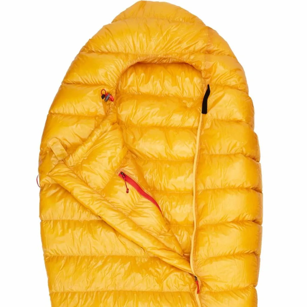 Beim Radical 1Z handelt es sich um einen der leichtesten Schlafsäcke seiner Klasse. Er ist die richtige Wahl, wenn du auf der Suche nach einem ultraleichten Modell bist, ohne dabei große Abstriche beim Komfort in Kauf nehmen zu müssen. Den Anfang macht der lange Seitenreißverschluss, den du bis zu den Füßen öffnen kannst. Dies erleichtert nicht nur den Einstieg und ermöglicht die Belüftung von der Fußseite her, sondern erlaubt dir auch, den Radical 1Z weit zu öffnen und als Decke zu verwenden.