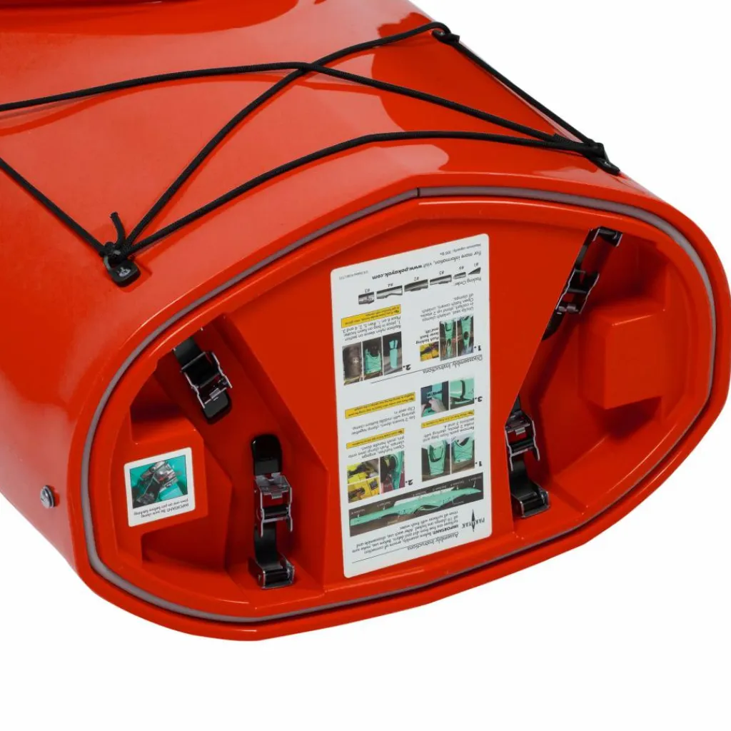Hergestellt aus recyceltem Polyethylen bietet dir dieses Kajak die Robustheit und Stabilität eines Feststoffbootes, kann jedoch zum Transport in einzelne Segmente zerlegt und ineinander gestapelt werden.