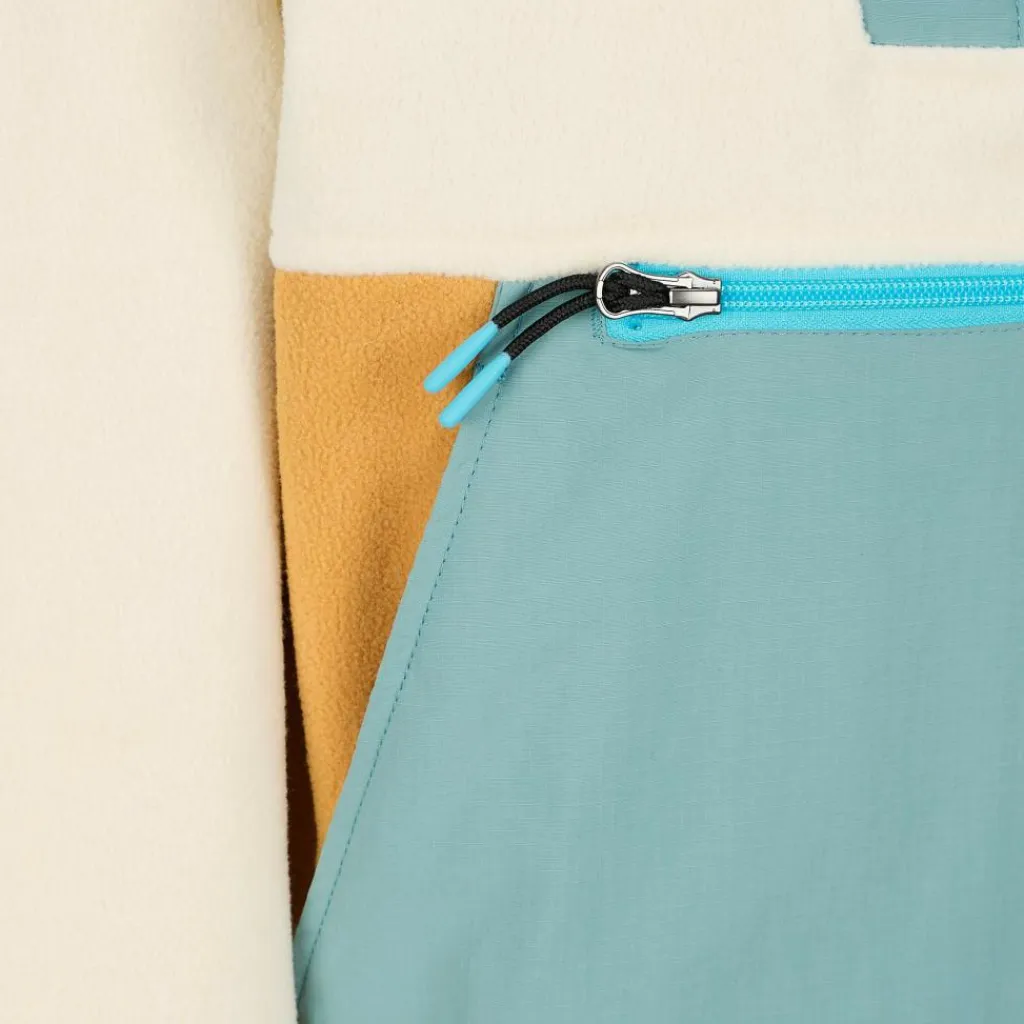 Die Mischung aus weichem Fleecematerial und glattem Nylon verleiht dem Fleecepullover einen ganz speziellen Look. Die recycelte Kunstfaser sorgt für einen raschen Feuchtigkeitstransport und trocknet schnell wieder. Genau das Richtige, wenn du aktiver unterwegs bist. In den ruhigen Momenten schenkt dir der Kapuzenpullover behagliche Wärme.