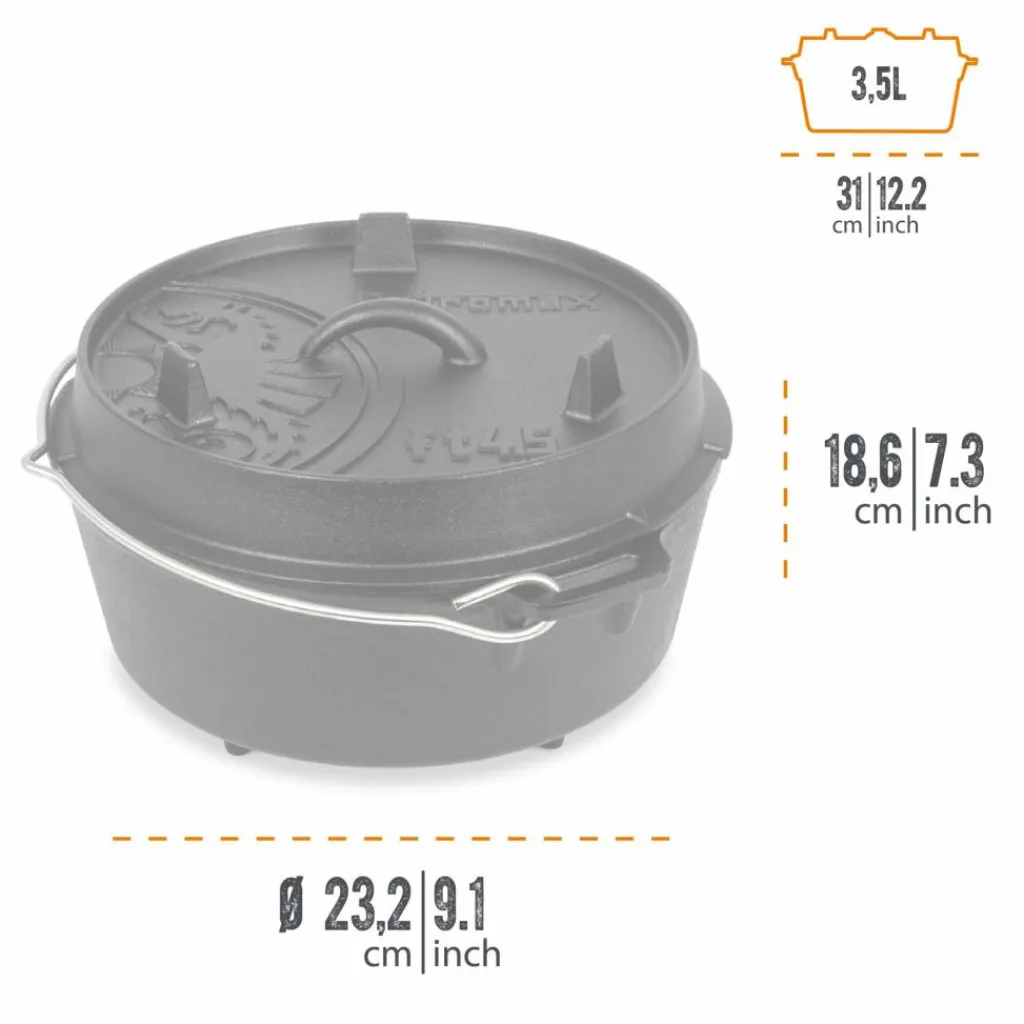 Dutch Oven mit Standfüßen, mit dem du direkt über dem Feuer oder im Ofen leckere Gerichte zaubern kannst. Er eignet sich zum Garen ebenso wie für leckere Eintöpfe, Suppen, Fleisch und Gemüse.
