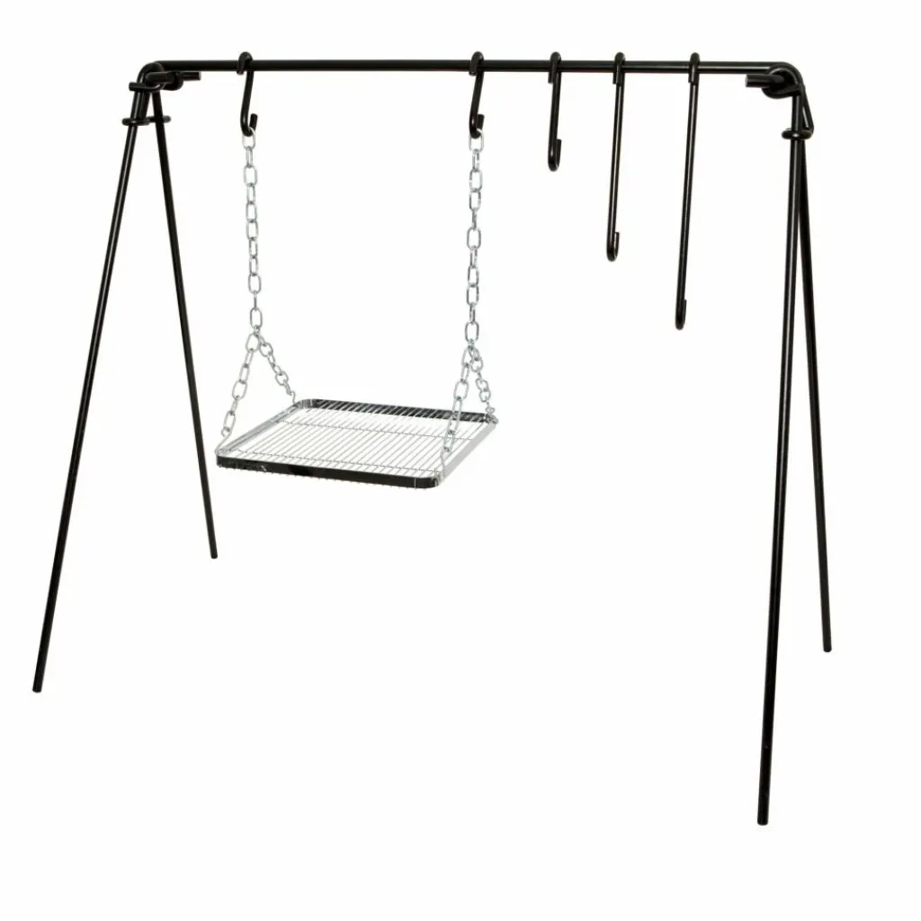 Das Grillrost mit 39 x 39 cm bietet ausreichend Platz, um Fleisch und Gemüse für mehrere Personen zuzubereiten. Auch Töpfe oder Getränke lassen sich darauf abstellen. Über die Kettenglieder kannst du die Höhe über dem Feuer und damit die Hitze regulieren.