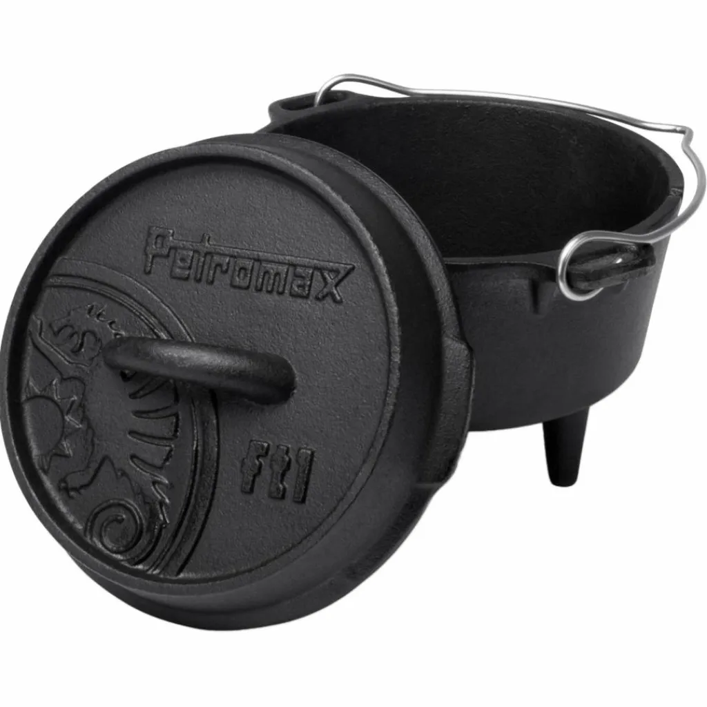 Der Deckel des Feuertopfs kann zudem optional als Servierplatte oder Pfanne genutzt werden. Dank der vorbehandelten Oberfläche (seasoned finished) kannst du den robusten Petromax Feuertopf aus Gusseisen sofort einsetzen.