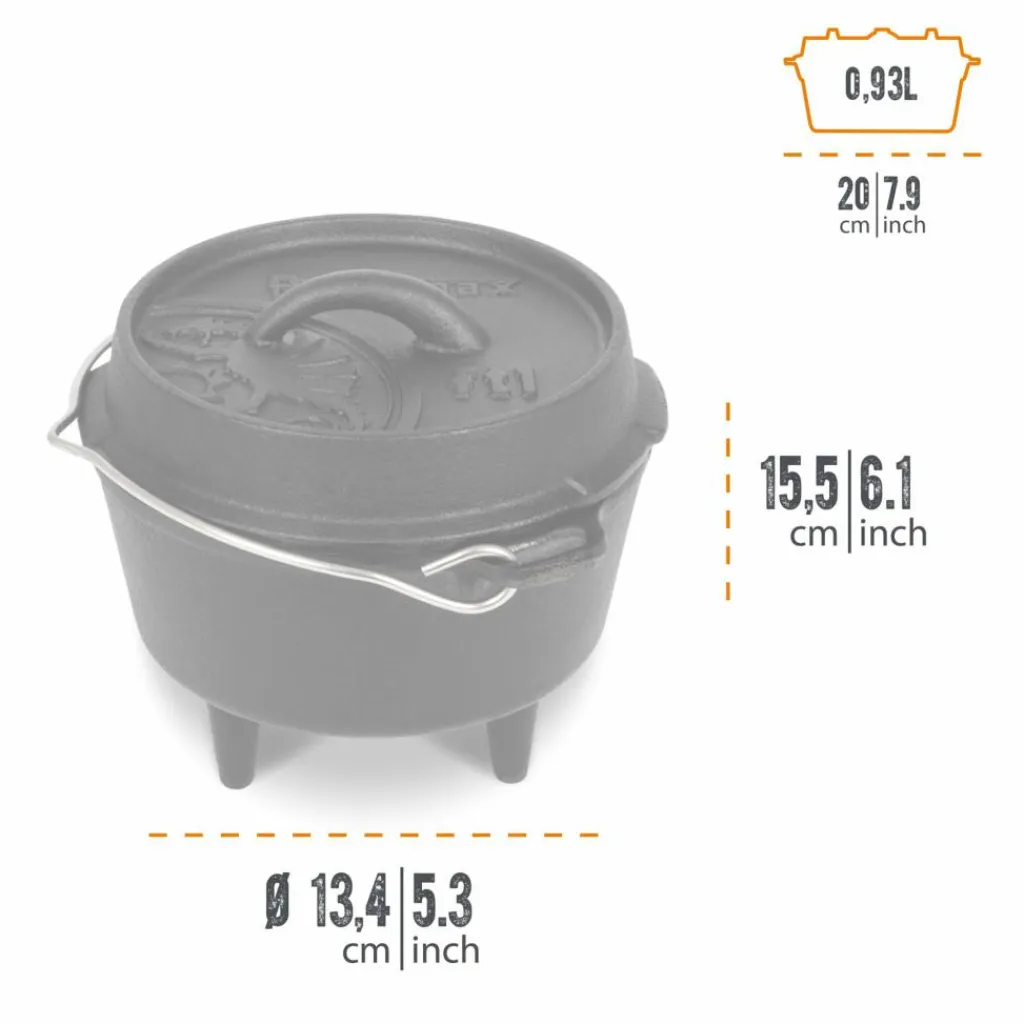 Kleiner Dutch Oven mit Standfüßen, mit dem du direkt über dem Feuer oder im Ofen leckere Gerichte zaubern kannst. Er eignet sich zum Garen ebenso wie für leckere Eintöpfe, Suppen, Fleisch und Gemüse.