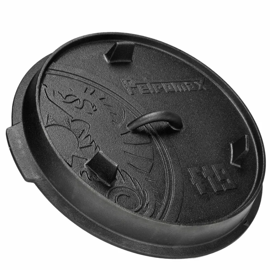 Der Deckel des Feuertopfs lässt sich optional auch als Servierplatte oder Pfanne verwenden. Dank der vorbehandelten Oberfläche (seasoned finish) kannst du den robusten Petromax Feuertopf aus Gusseisen sofort einsetzen. Der Topf sorgt für einen einzigartigen Geschmack durch konstante Rundumwärme und ermöglicht eine besonders schonende Zubereitung von Speisen wie Brot, Gemüse oder Fleisch. Der Deckel lässt sich zudem als Pfanne oder Servierteller nutzen. Durch die vorbehandelte Oberfläche ist der Feuertopf sofort einsatzbereit und unkompliziert zu pflegen.