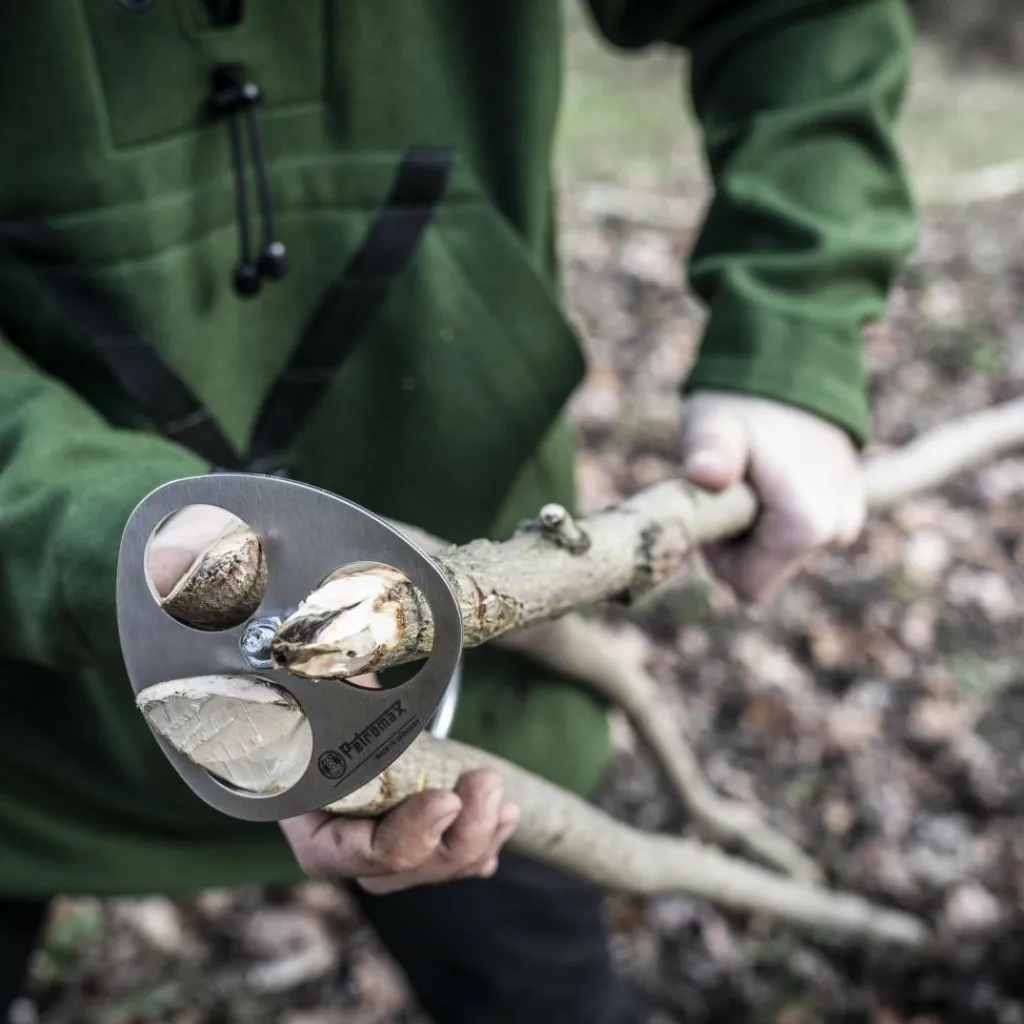 Mit diesem nützlichen Ring bastelst du dir im Handumdrehen ein Dreibein. Dafür schiebst du einfach Äste in gewünschter Länge durch die Öffnungen und stellst diese auf. Inkl. längenverstellbarer Kette.