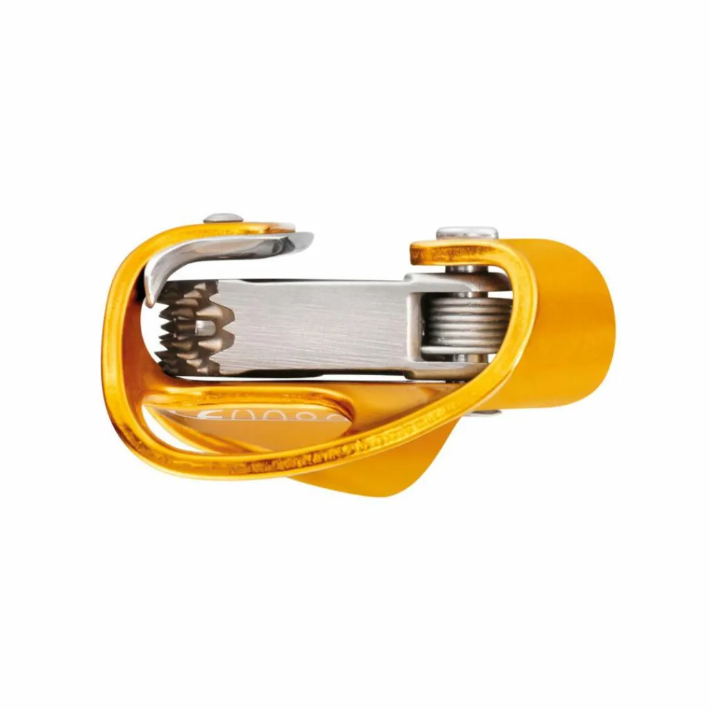 Leichte Steigklemme aus Aluminium mit abriebfester Führungsplatte aus rostfreiem Stahl. Gezahnte, selbstreinigende Edelstahl-Klemmnocken.