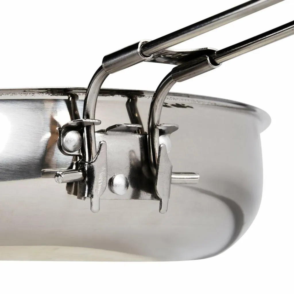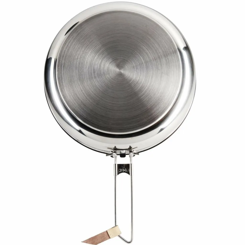 Die große Campfire Frying Pan kannst du auf Gaskochern, Benzinkochern, Multifuelbrennern, über dem Lagerfeuer und selbst auf Induktionsplatten verwenden. Ein Klappgriff ermöglicht ein platzsparendes Verstauen. Du kannst ihn bei Benutzung per Schieberiegel sichern und verhinderst damit ein einklappen bei der Nutzung. Besonders praktisch ist der Schüttrand. So kannst du Soßen zielgenau und tropffrei ausschenken, ohne dass sie an der Außenseite der Pfanne herunterläuft. Die steilen Wände und das Volumen von 2 l ermöglichen dir zudem die Zubereitung von Gemüse, Fleisch und flüssigen Speisen.