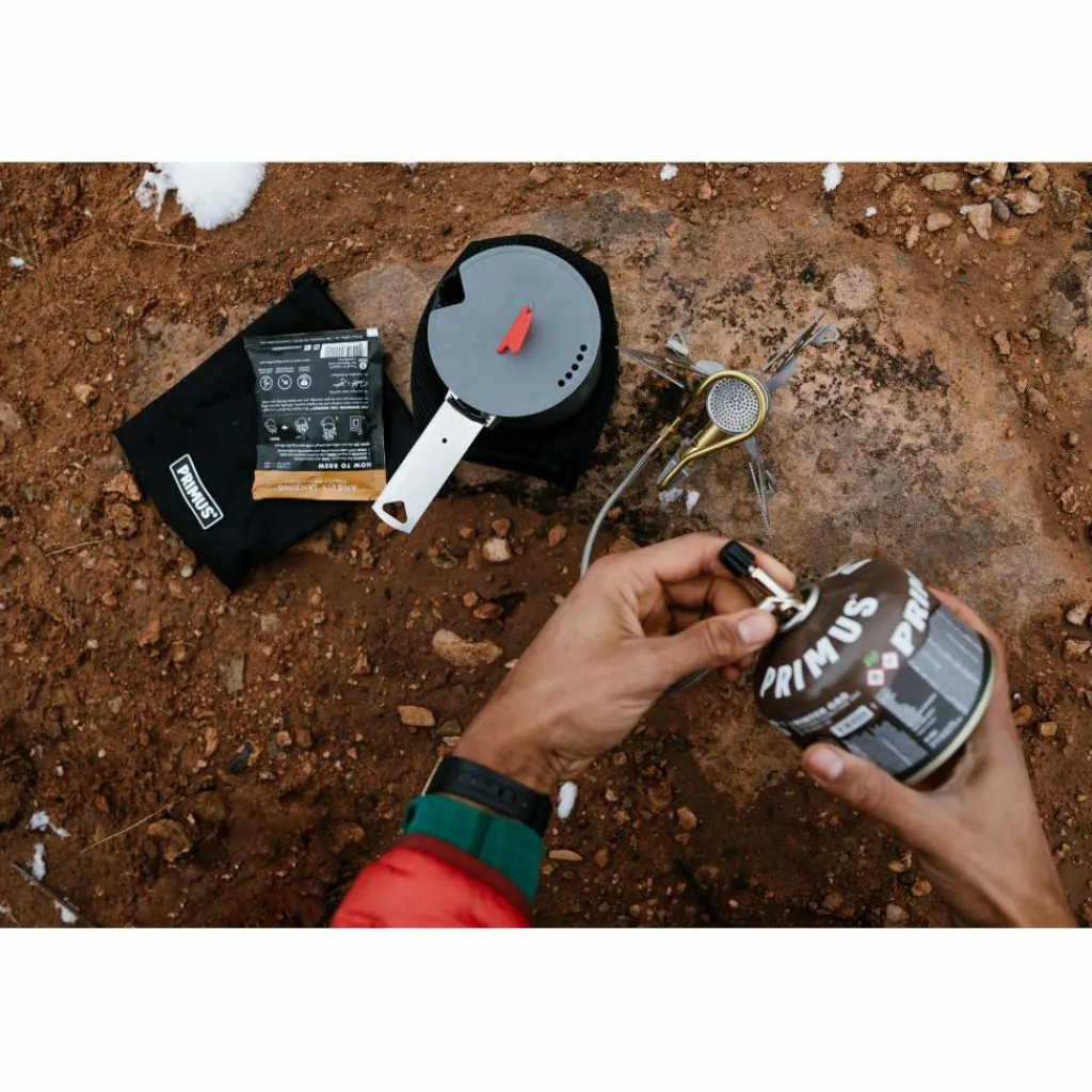 Mit einem optionalen Multifuel-Kit kann der Express Spider auch Benzin, Petroleum und Kerosin verbrennen. Damit erweitert er sein Einsatzgebiet hin zum superleichten, wintertauglichen Allrounder, der auch in Gebieten mit schlechter Gaskartuschen-Versorgung seinen Dienst tut.