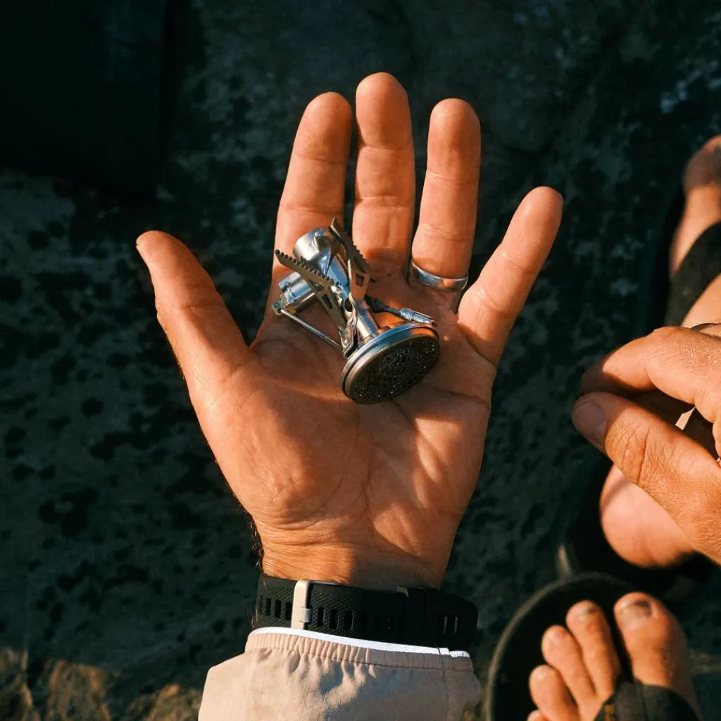 Der Micron wurde überarbeitet, ist nun leichter denn je und bringt nur noch 58 g auf die Waage. Mit ihm lassen sich bequem Mahlzeiten für 1–2 Personen zubereiten. Die schmale, windbeständige Flamme liefert 2600 Watt Leistung und bringt 1 Liter Wasser innerhalb von etwa 5 Minuten zum Kochen. Die drei faltbaren Topfauflagen halten deinen Topf dabei sicher in Position. Für den Transport lassen sie sich einfach einklappen, wodurch ein besonders kleines Packmaß entsteht. Als Gaskartuschen sind handelsübliche Schraubkartuschen verwendbar.