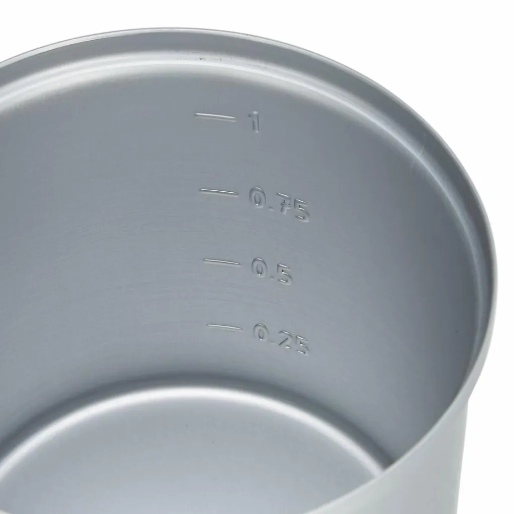 Du kannst im Trek Pot kleine Mahlzeiten zubereiten oder Wasser für die Trekking-Nahrung kochen. Damit sich die Hitze über den gesamten Topfboden verteilt, ist dieser etwas dicker gefertigt und hat auf der Unterseite ein spiralförmiges Muster. Durch die bessere Hitzeverteilung brennen auch Speisen nicht so leicht an. Ein Ausgießer erleichtert das Umfüllen des Inhalts.