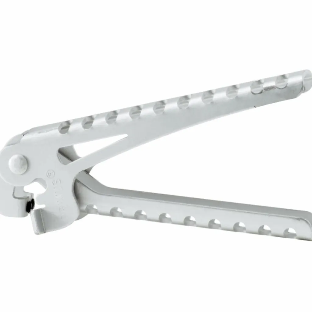 Leichte Griffzange aus Aluminium mit Topfschutz, um beschichtete Pfannen und Töpfe nicht zu beschädigen. Auch mit wenig Handkraft kann mit der Zange sicher hantiert werden.
