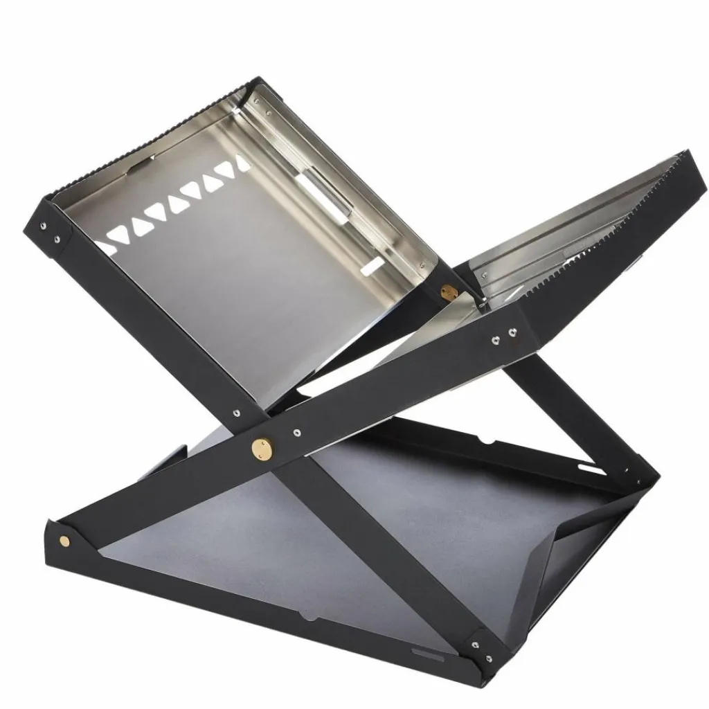 Innerhalb von Sekunden ist die Feuerschale aufgeklappt, einsatzbereit und umgekehrt auch schnell wieder verstaubar. Der pulverbeschichtete Stahl ist robust, langlebig und sehr hochwertig verarbeitet. Die eigentliche Feuerschale besteht aus Edelstahl mit Lufteinlässen auf der Unterseite. Diese ermöglichen eine effektive Verbrennung.