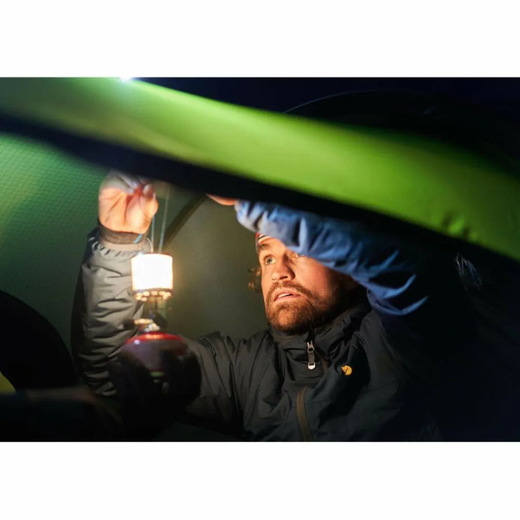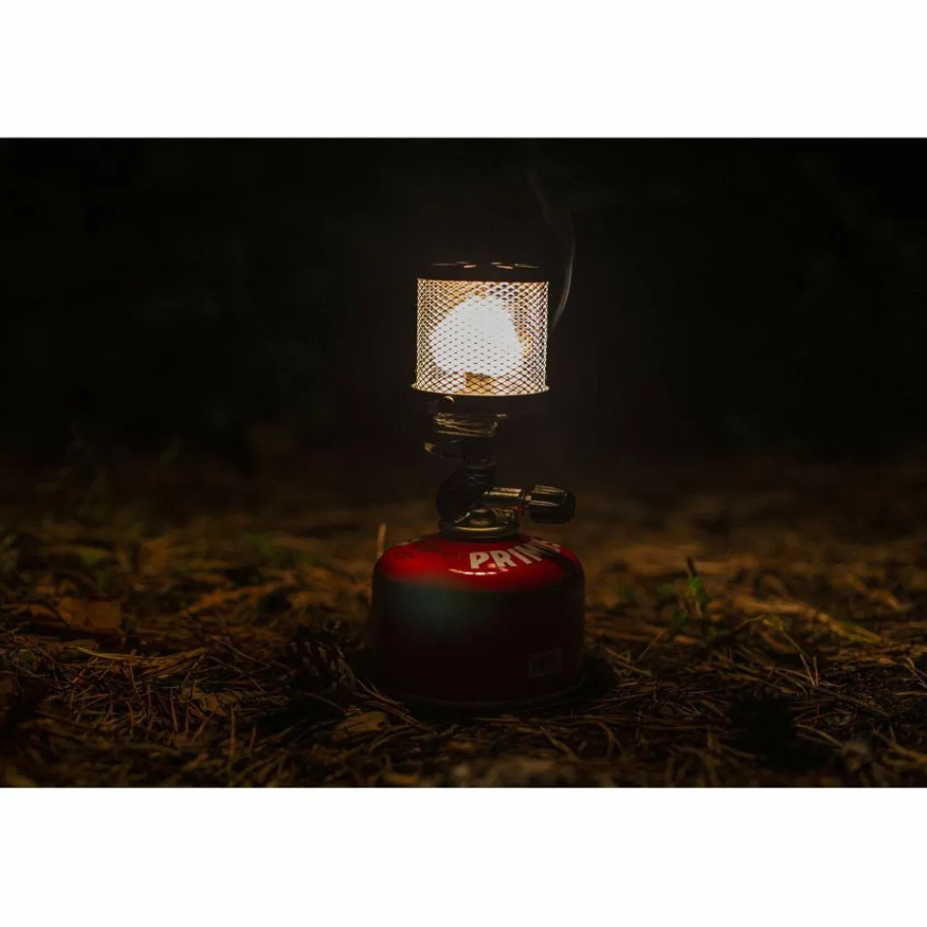Kleine Laterne für Puristen und Leichtgewichtsfetischisten, die ganz ohne Glas auskommt. Der Glühstrumpf ist von einem sehr robusten Gazekorpus umgeben.