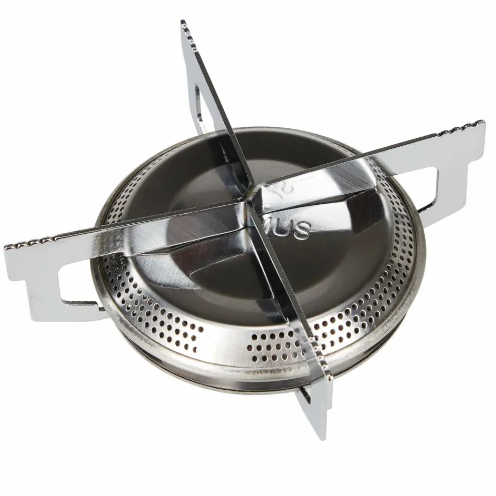 Der Kocher passt auf handelsübliche Schraubgaskartuschen und bietet mit 2800 W Leistung genug Power, um 1 l Wasser in 3:40 min zum Kochen zu bringen. Die kreuzförmige Topfauflage dient gleichzeitig als leichter Windschutz.