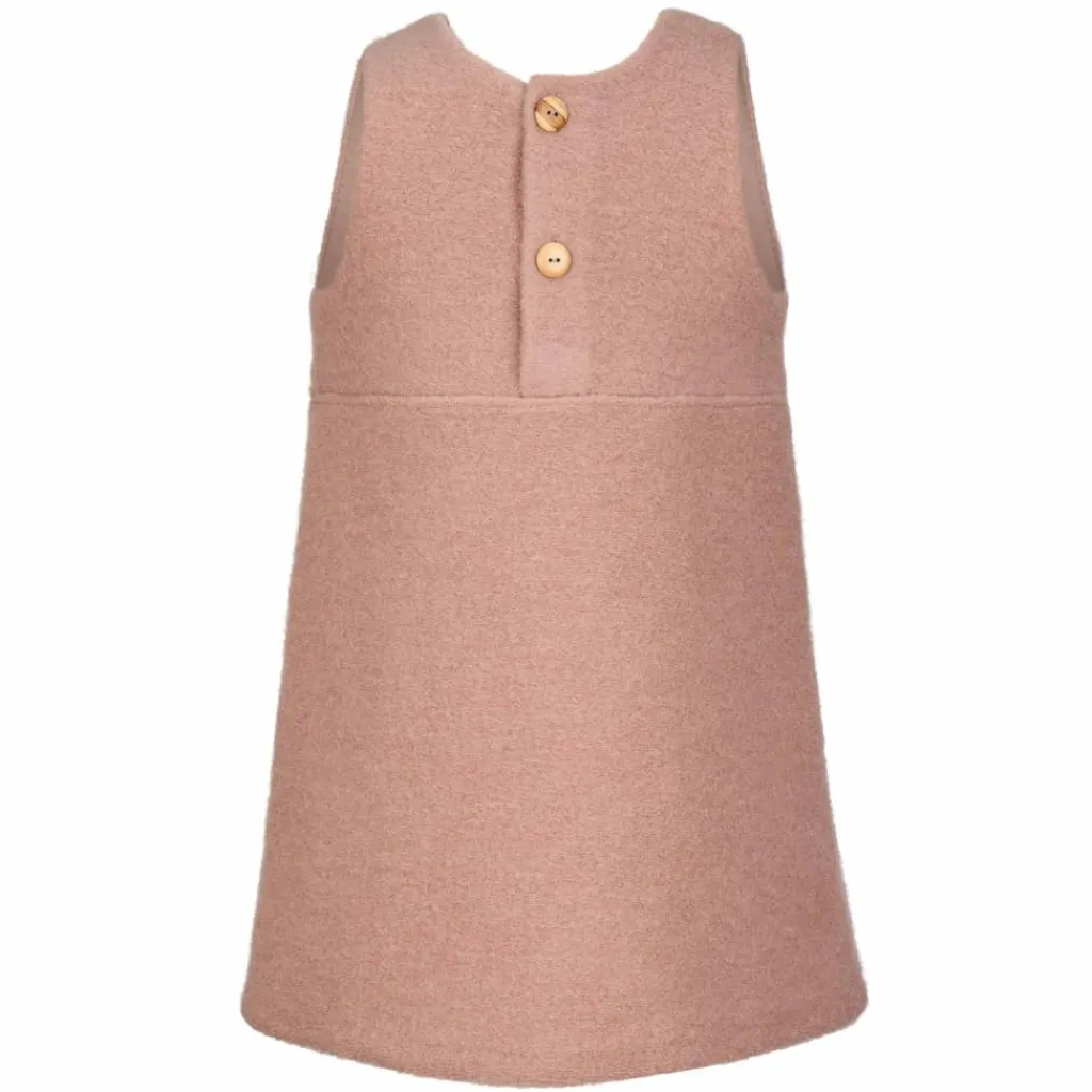 Das Kleid ist aus einer Mischung aus feiner Schurwolle und Bio-Baumwolle hergestellt. Das Material ist gewalkt, so wird die Wärme besonders gut gespeichert und die Strapazierfähigkeit erhöht. Die Wolle sorgt dank ihrer feuchtigkeits- und temperaturausgleichenden Eigenschaften dafür, dass deinen Kindern draußen nicht zu kalt und drinnen nicht zu warm wird.