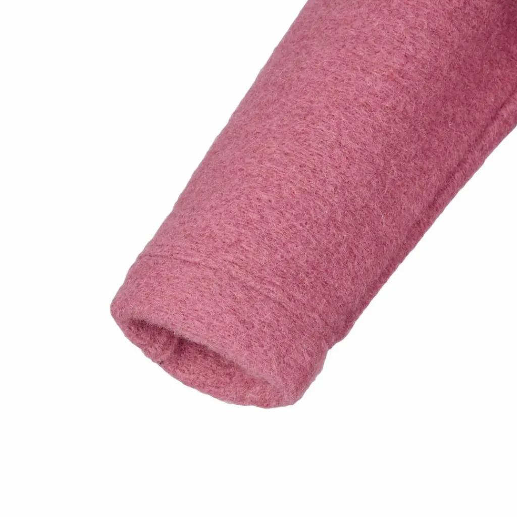 Das robuste Wollwalk besteht aus einer Mischung aus Schurwolle und Bio-Baumwolle. Dank des hohen Wollanteils leitet das Material Feuchtigkeit schnell ab und wirkt temperaturausgleichend. So bleiben die Kinder bei kühlem Wetter angenehm warm, sie überhitzen aber auch nicht, wenn sie durch den Wald toben. Da Wolle auch im feuchten Zustand wärmt, ist es nicht weiter schlimm, wenn die Kleinen mal einige Tropfen von den Bäumen oder einen kleinen Schauer abbekommen. Durch die Beimischung von Bio-Baumwolle hat die Jacke einen weicheren Griff. Abgesehen von der Kapuze ist der Parka ungefüttert. Dadurch eignet er sich sehr gut für kühle Herbst- und Frühjahrstage.