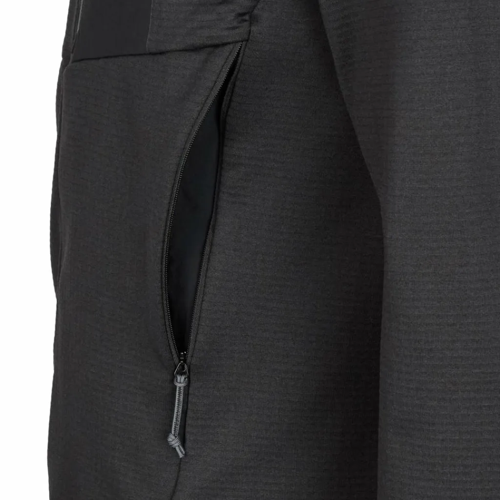 Durch seine schmale, sportliche Passform passt der Ascendor Hoody problemlos unter Hard- oder Softshelljacken. Die helmkompatible Kapuze liegt eng an und spendet zusätzliche Wärme, wenn der Wind auffrischt. Dank der verlängerten Rückenpartie bleibt der Hoodie auch unter dem Klettergurt zuverlässig an Ort und Stelle. Die Flachnähte verhindern Druckstellen beim Tragen mehrerer Schichten. Neben der Brusttasche verfügt der Hoody außerdem über zwei hoch angebrachte Seitentaschen, die auch mit angelegtem Klettergurt bedienbar sind.