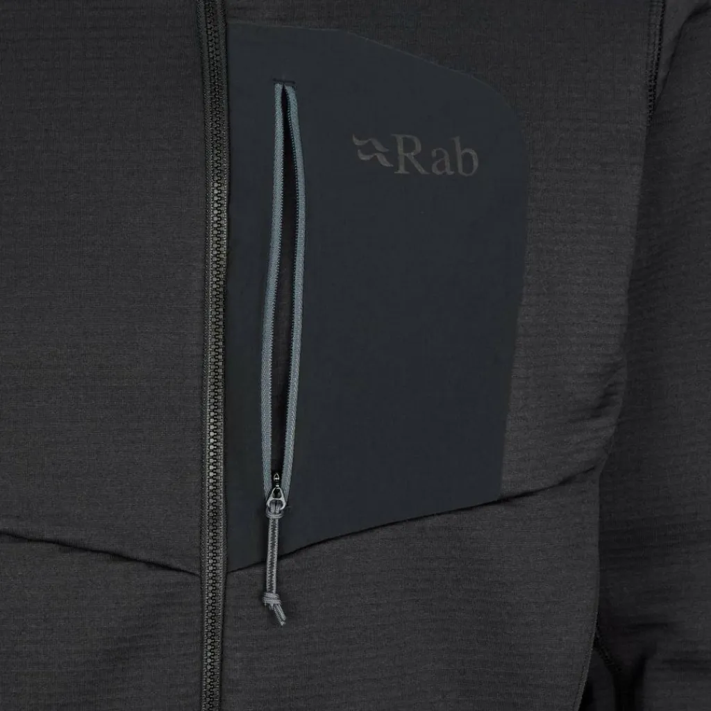 Außen ist das verwendete Grid-Fleece-Material glatt und weich, innen sorgt eine Waffelstruktur für ein sehr gutes Wärme-Gewichtsverhältnis und einen schnellen Abtransport von Körperfeuchtigkeit. Das elastische Material passt sich allen deinen Bewegungen an. Perfekt, wenn es im Eis oder am Fels richtig anstrengend wird.