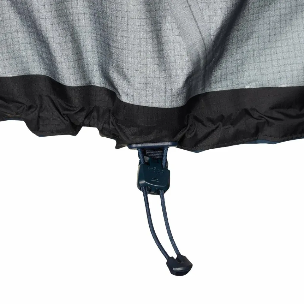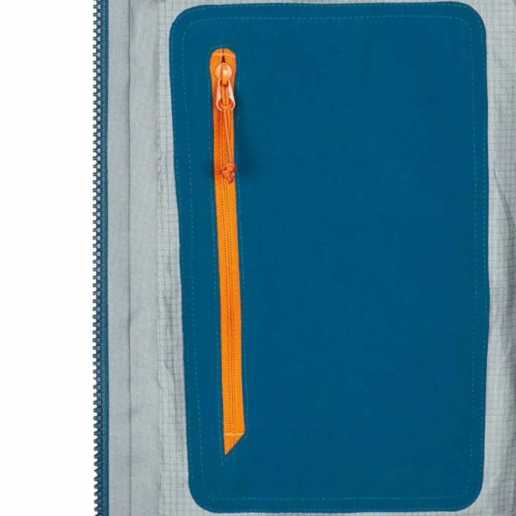 Geht es in die Vollen, kannst du dank der RV-Unterarmbelüftungen für wohltuende Abkühlung sorgen. Dagegen bietet dir die im Volumen vorne und hinten regulierbare Kapuze optimalen Schutz bei stürmischem Regenwetter. Obendrein kann sie bei Klettereinheiten eingerollt und per Klettverschluss fixiert werden. Die beiden RV-Taschen sind bewusst höher angebracht, sodass du bequem einen Becken- oder Klettergurt tragen kannst. Und damit auch an den Ärmel und am Saum Nässe und Wind abgehalten werden, lassen sich diese in der Weite regulieren.