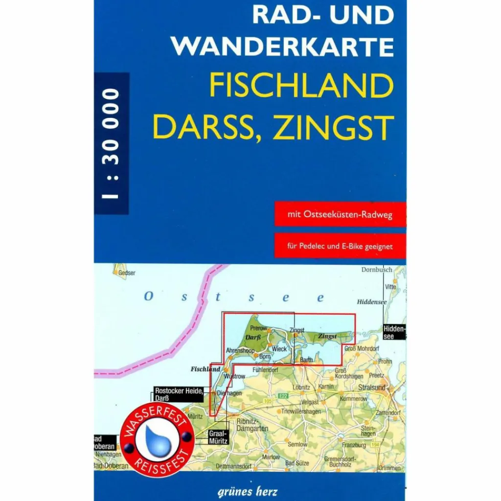 Die Rad- und Wanderkarte „Fischland, Darß, Zingst“ stellt die bei den Gästen äußerst beliebte Halbinselkette Fischland, Darß und Zingst sowie die südlich vorgelagerten Boddengewässer dar. Dies wird durch den besonders gewählten Blattschnitt und den auf beiden Seiten dargestellten Kartenteil möglich. Dennoch blieb noch ausreichend Platz für textliche Erläuterungen zu den Orten und ihren Sehenswürdigkeiten. Die Rad- und Wanderkarte (M 1:30.000) enthält das aktuelle Wegenetz für Wanderer, Radler als auch Reiter sowie wichtige Informationen zu den interessantesten Ausflugszielen, Gastronomie und Übernachtungsmöglichkeiten.