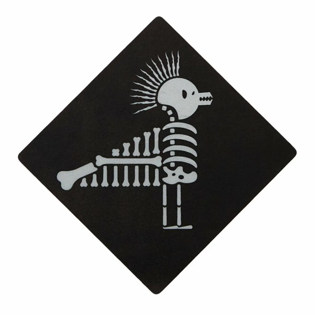Nach Feuerzeug und W:O:A-Becher jetzt auch auf einem Sticker in stark reflektierender Ausführung: Die Skelett-Möwe strahlt dank Reflective Berlin besonders hell in die Nacht.