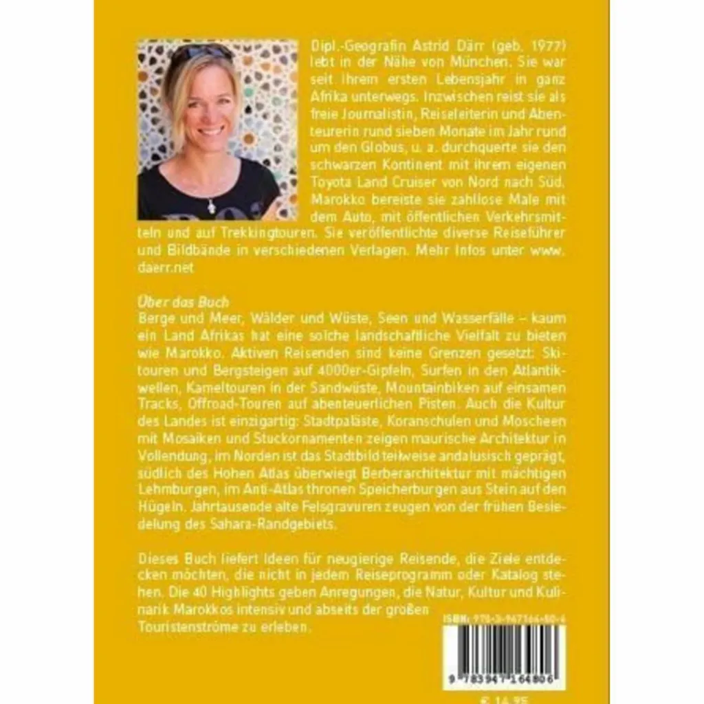 Jahrtausende alte Felsgravuren zeugen von der frühen Besiedelung des Sahara-Randgebiets. Dieses Buch liefert Ideen für neugierige Reisende, die Ziele entdecken möchten, die nicht in jedem Reiseprogramm oder Katalog stehen. Die 40 Highlights geben Anregungen, die Natur, Kultur und Kulinarik Marokkos intensiv und abseits der großen Touristenströme zu erleben.