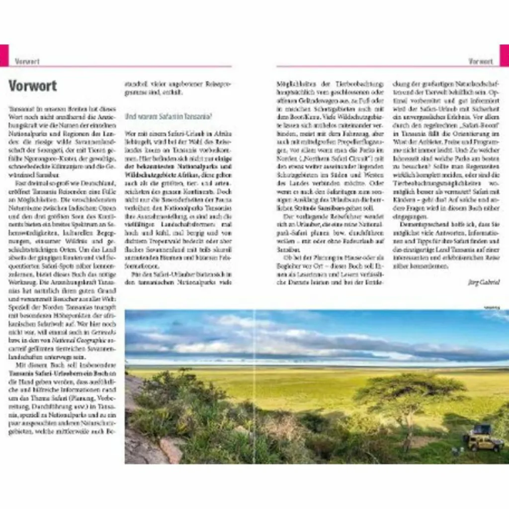 Folgen Sie unserem Experten in seine persönliche Heimat, den Arusha Nationalpark zwischen den Gipfeln des Mt.Meru und Kilimanjaro, oder gehen Sie mit ihm auf Safari in den großen wilden Ruaha Nationalpark. Zu den beeindruckendsten Naturwundern gehört der Ngorongoro-Krater, 600 m tief und 20 km breit. Hier lebt Tansanias Tierwelt auf kleinem Raum. Es gibt so viele Reservate und Nationalparks; unser Autor Jörg Gabriel erleichtert die Qual der Wahl durch seine jahrelange Erfahrung und Ortskunde, ausgezeichnete Fachkenntnis und detaillierte Beschreibungen. Das Buch wendet sich an Reisende, die eine Safari in Tansania planen (mit oder ohne Badeurlaub auf Sansibar), und liefert das dazu notwendige Reise-Know-how.