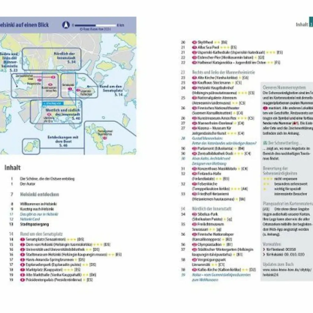 Helsinki zum Durchatmen: Hietaniemi-Strand, Kaivopuisto-Park, Observatoriumshügel – Ausgewählte Unterkünfte von preiswert bis ausgefallen – Alle praktischen Infos zu Anreise, Preisen, Stadtverkehr, Touren, Events, Hilfe im Notfall – Hintergrundartikel mit Tiefgang: Geschichte, Mentalität der Bewohner, Leben in der Stadt – Kleine Sprachhilfe Finnisch mit den wichtigsten Vokabeln für den Reisealltag – Faltplan zum Herausnehmen Dazu: kostenlose Web-App für Smartphone, Tablet und PC mit Stadtplan- und Satellitenansichten passend zum Text, Routenführung zu allen beschriebenen Sehenswürdigkeiten, Verlauf des Stadtspaziergangs, seitenbezogenen Updates nach Redaktionsschluss sowie einem Mini-Audiotrainer Finnisch