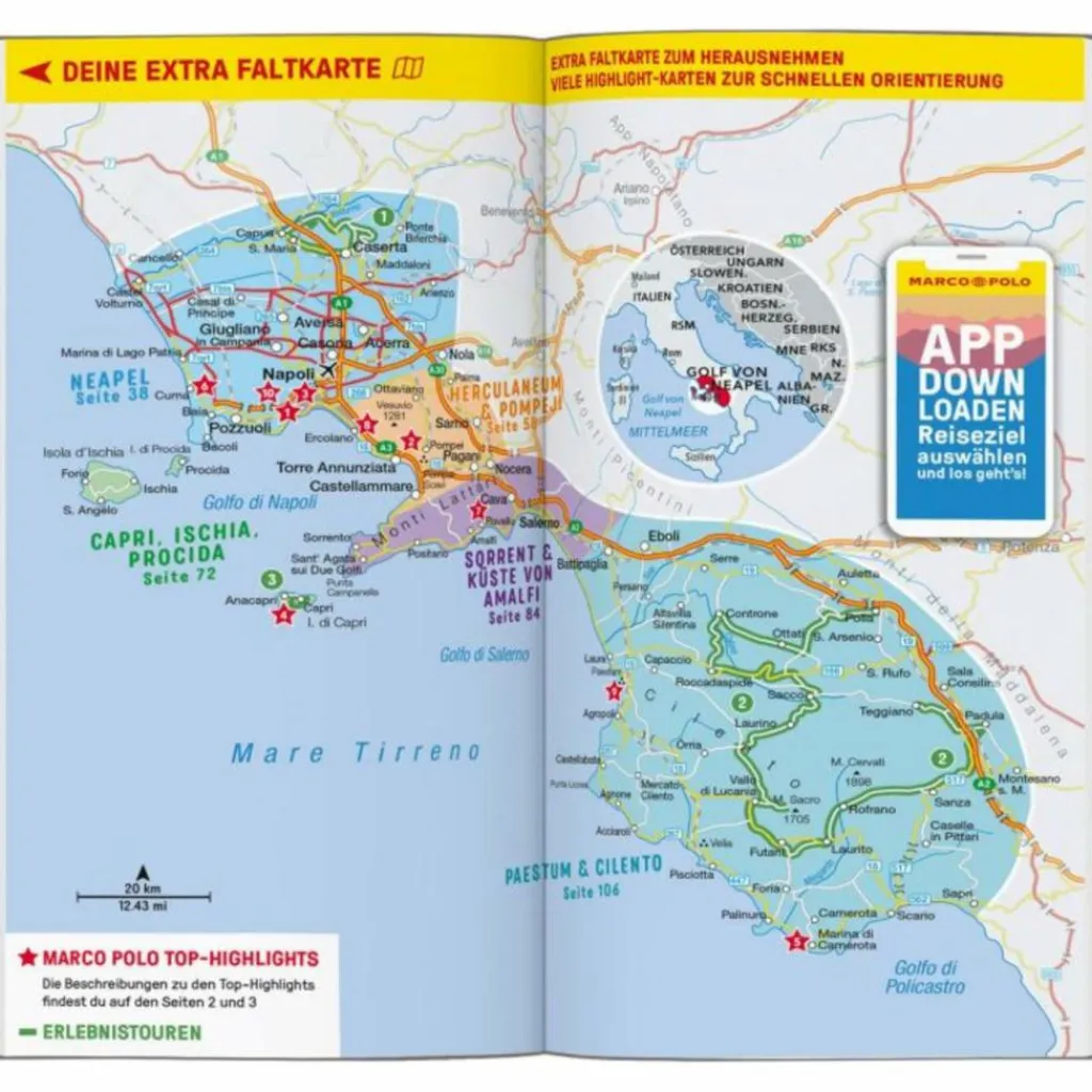 Pasta oder Pizza schlemmen, danach ein köstlicher Schluck Limoncello-Zitronenlikör, um anschließend die über 200 Treppengassen Neapels zu erkunden: Dein Marco Polo Reiseführer ist der perfekte Begleiter bei all deinen Unternehmungen. Bestaune die Ausgrabungen Pompeji, mach ein Selfie vor der Inselsilhouette von Capri oder wandere durch die spektakuläre Natur bei Amalfi. Ob Aktivurlaub oder Erholung pur – mit dem Marco Polo Reiseführer Golf von Neapel stellst du dir eine Reise ganz nach deinem Geschmack zusammen!