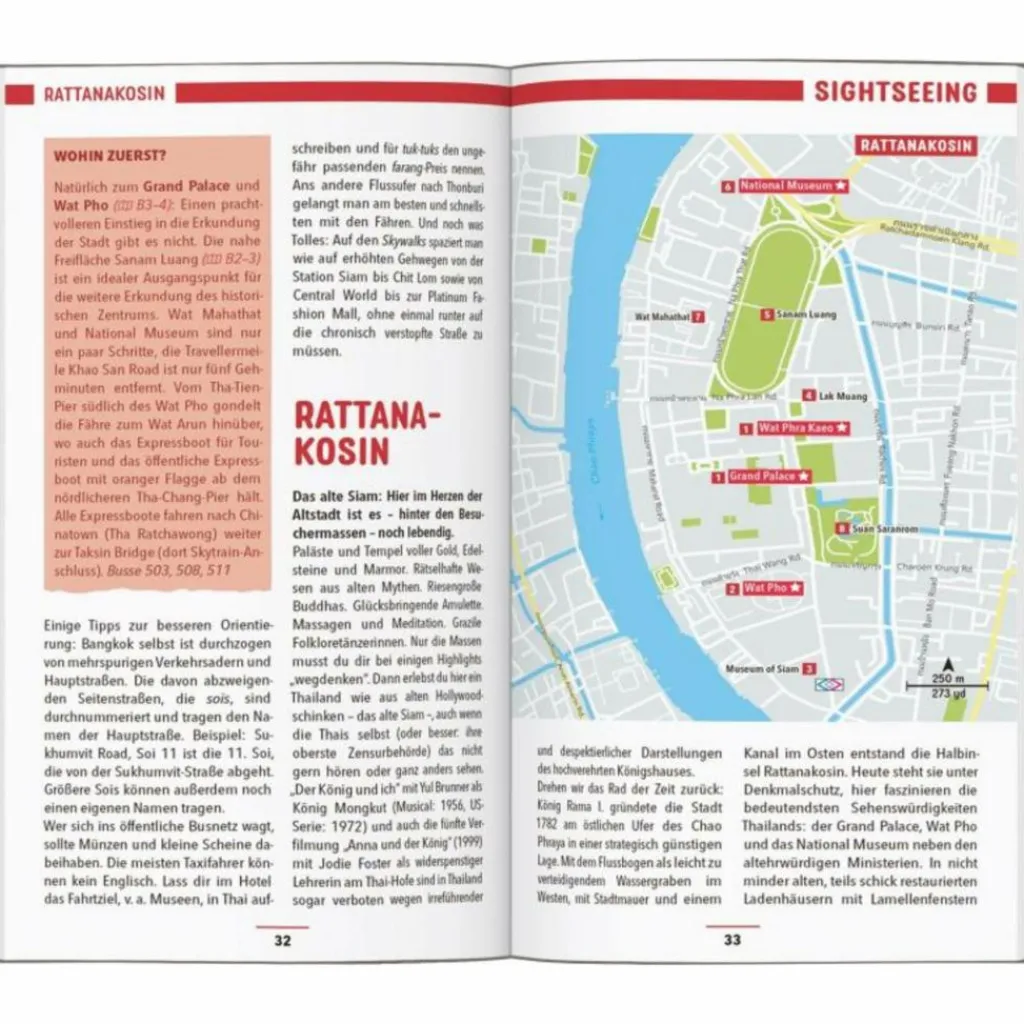 Eine Megacity zwischen Himmel und Erde, Gestern und Heute: Während oben der Skytrain Touristen und Einheimische in Rekordzeit transportiert, paddeln unten Gemüseverkäuferinnen in Holzbooten über alte Kanäle. Im 60. Stock kredenzen Sterneköche Gourmetgerichte in hochmodernen Rooftop-Restaurants, auf der Straße brutzeln in traditionellen Garküchen Fleischspieße über Holzkohlefeuern. Egal, ob du einen aufregenden Städteurlaub verbringen oder in Ruhe in den Alltag der Thailänder eintauchen möchtest: Dein Marco Polo Reiseführer Bangkok ist immer dabei!