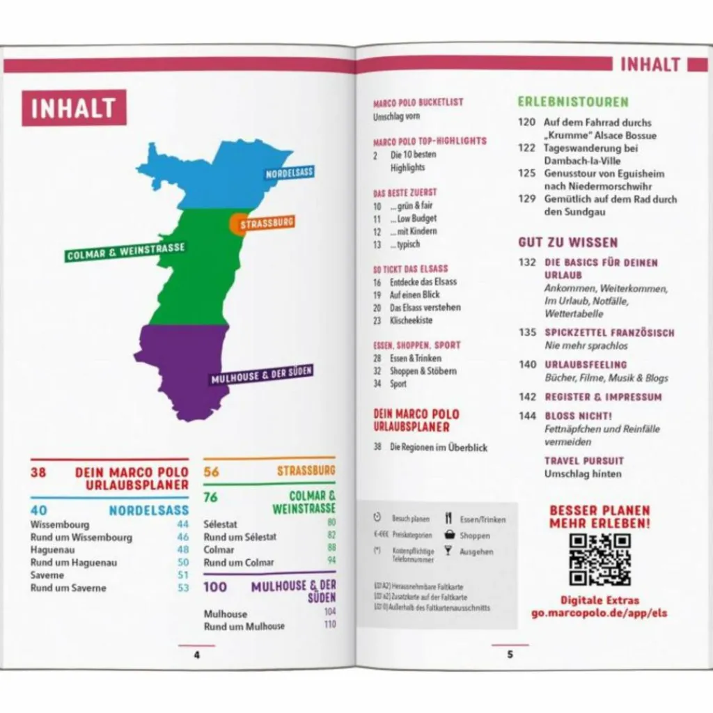 Auf dem Mountainbike downhill durch die Berge, mit dem Hausboot im Schritttempo auf Flüssen und Kanälen oder zu Fuß unterwegs auf der Grand’Rue: Das kleine Elsass ist ein Landstrich mit vielen Geschwindigkeiten. Du hast Lust auf einen actionreichen Aktivurlaub oder eine Schlemmerreise mit Entspannung pur? Im Elsass kannst du alles haben! Dein Marco Polo Reiseführer gibt dir die besten Tipps und bringt dich immer schnell zum nächsten Ziel.