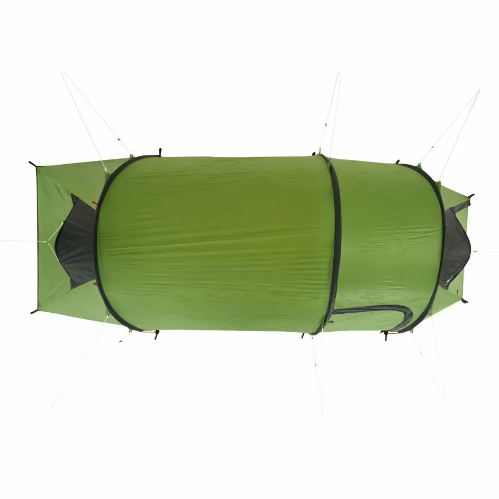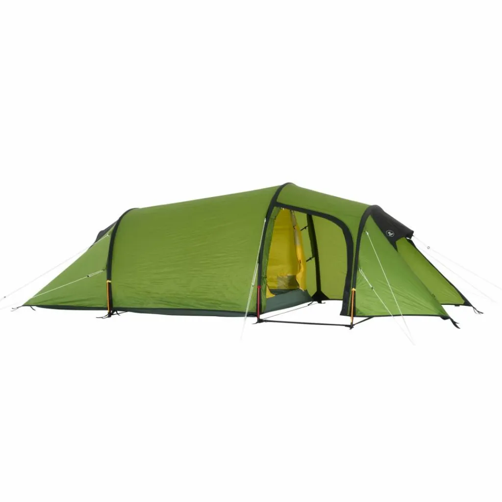 Gerade auf materialintensiven Touren, bei denen der Platz knapp ist und man nicht zu viel schleppen möchte, kommt dieses Tunnelzelt gerade richtig. Ein silikonisiertes Gewebe am Außenzelt sowie eine minimalistische Konstruktion sorgen für ein relativ geringes Gesamtgewicht. Gleichzeitig punktet es hoher Strapazierfähigkeit.