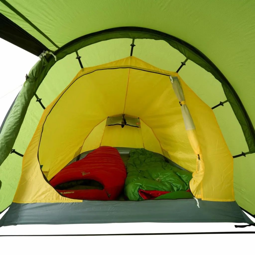 Den Innenraum nutzt du dank steiler Seitenwände perfekt aus und hast sowohl im Schlafraum als auch in der Apsis ein hervorragendes Platzangebot. Dort verstaust du auch sperrige Gegenstände wie Trekkingrucksäcke, Schuhe oder große Packsäcke problemlos.
