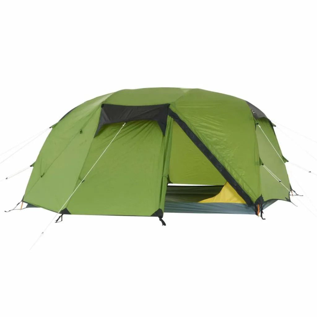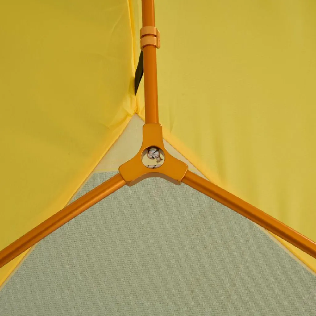 Bist du unterwegs und es herrscht schlechtes Wetter? Oder möchtest du einfach einen Tag an einem schönen Ort verbringen, ohne dabei in einem Zelt eingeengt zu sein? Dann ist das Hamra Light in der HC-Version genau das Richtige für dich. Durch das Gestänge mit hoch angesetzten Kreuzpunkten wird der Fuß- und Kopfbereich weit aufgespannt, was zu steilen Seitenwänden führt. In dieser Version kommen zwei zusätzliche Querbögen im Kuppelbereich zum Einsatz, die das Innenzelt weiter aufspannen und erheblich mehr Platz im Kopfbereich schaffen. So bietet das Innenzelt mehr Bewegungsfreiheit als andere Modelle. Für eine ausreichende Belüftung sorgen zwei große Hochlüfter an den Querseiten sowie zwei kleinere Lüfter an den Apsiden. Die Türen des Innenzelts bestehen aus großflächigem Mesh-Material, die bei Bedarf teilweise oder vollständig abgedeckt werden können.
