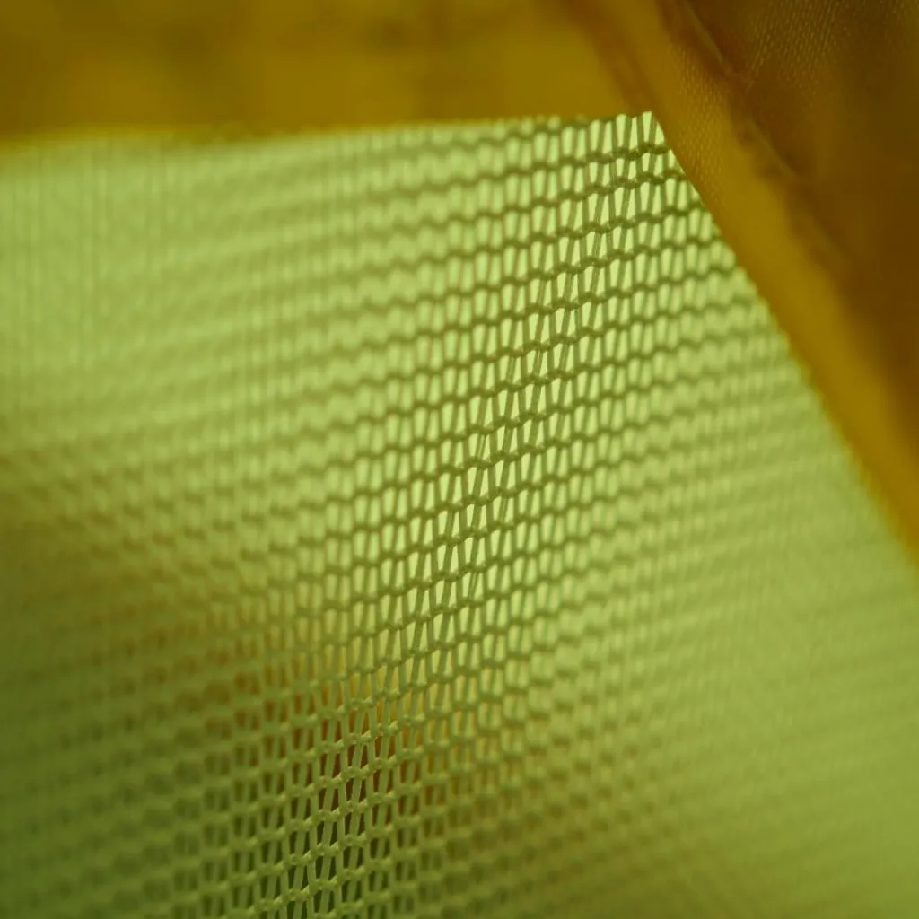 Für ausreichende Belüftung sorgen zwei große Hochlüfter an den Querseiten sowie zwei kleinere Lüfter an den Apsiden. Die Tür des Innenzelts besteht aus einem großflächigen Mesh-Material, das bei Bedarf teilweise oder vollständig abgedeckt werden kann.