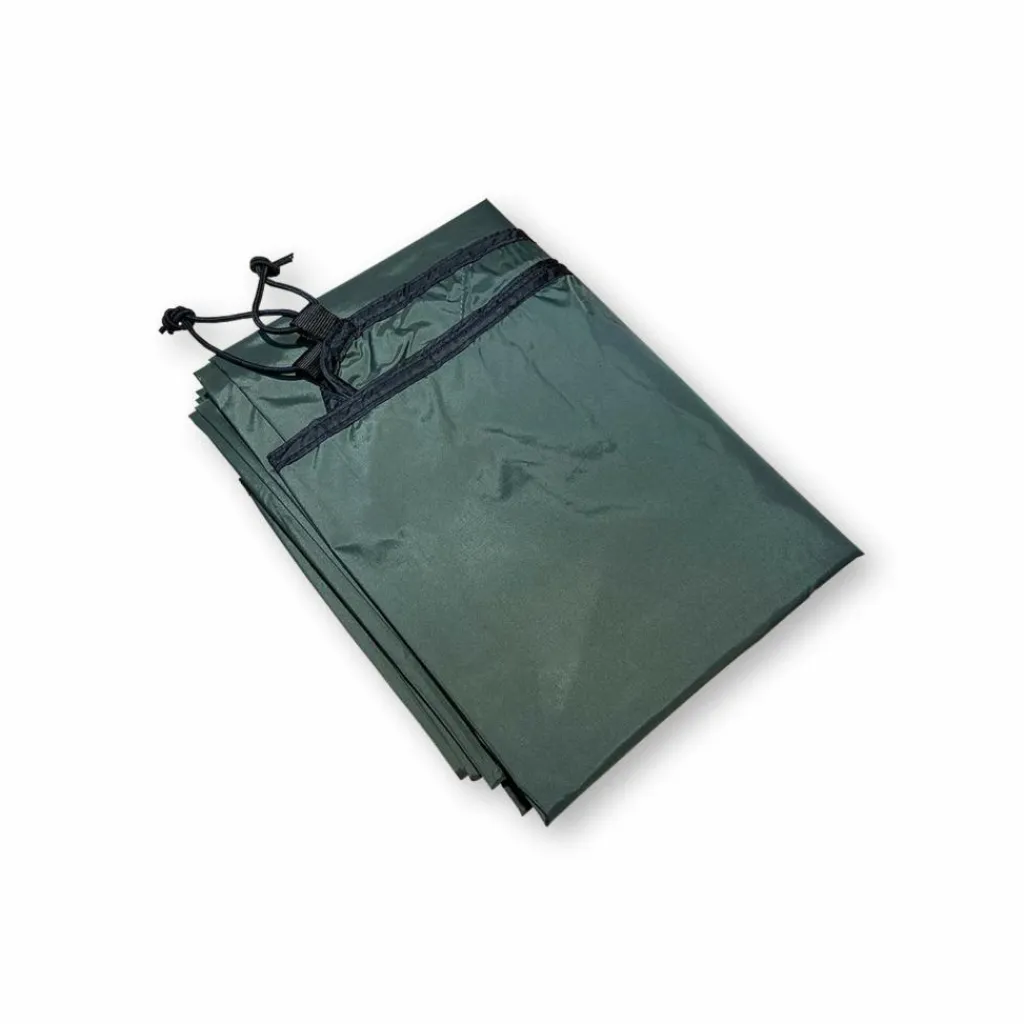 Die Unterlage wird lose unter das Zelt gelegt, kann bei Bedarf jedoch auch mit Heringen (separat erhältlich) abgespannt werden. Der Einsatz einer Bodenplane verlängert die Lebensdauer des Zeltbodens deutlich!